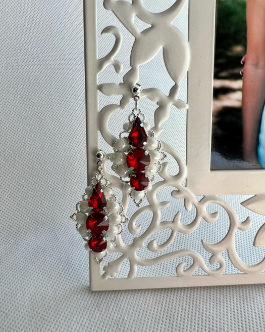 Nádherné červeno bílé náušnice. Naprosto dokonalý kousek k šatům.
