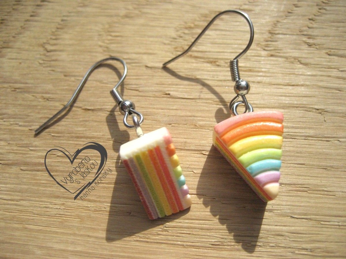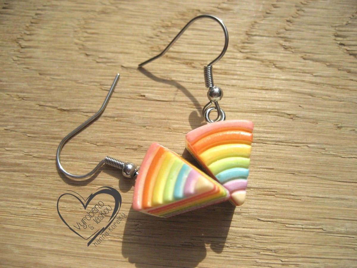 Veselé, hravé náušnice z pryskyřice - dort - dortík - dortíček - velikost motivu bez očka 1,5 a 1,2 cm + náušnicový háček z nerez oceli