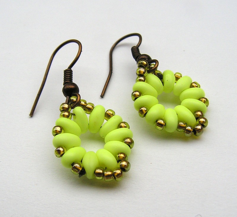 Šité náušnice z korálků superduo a toho, délka náušnic bez háčku je 17 mm, komponenty v barvě starobronz.
