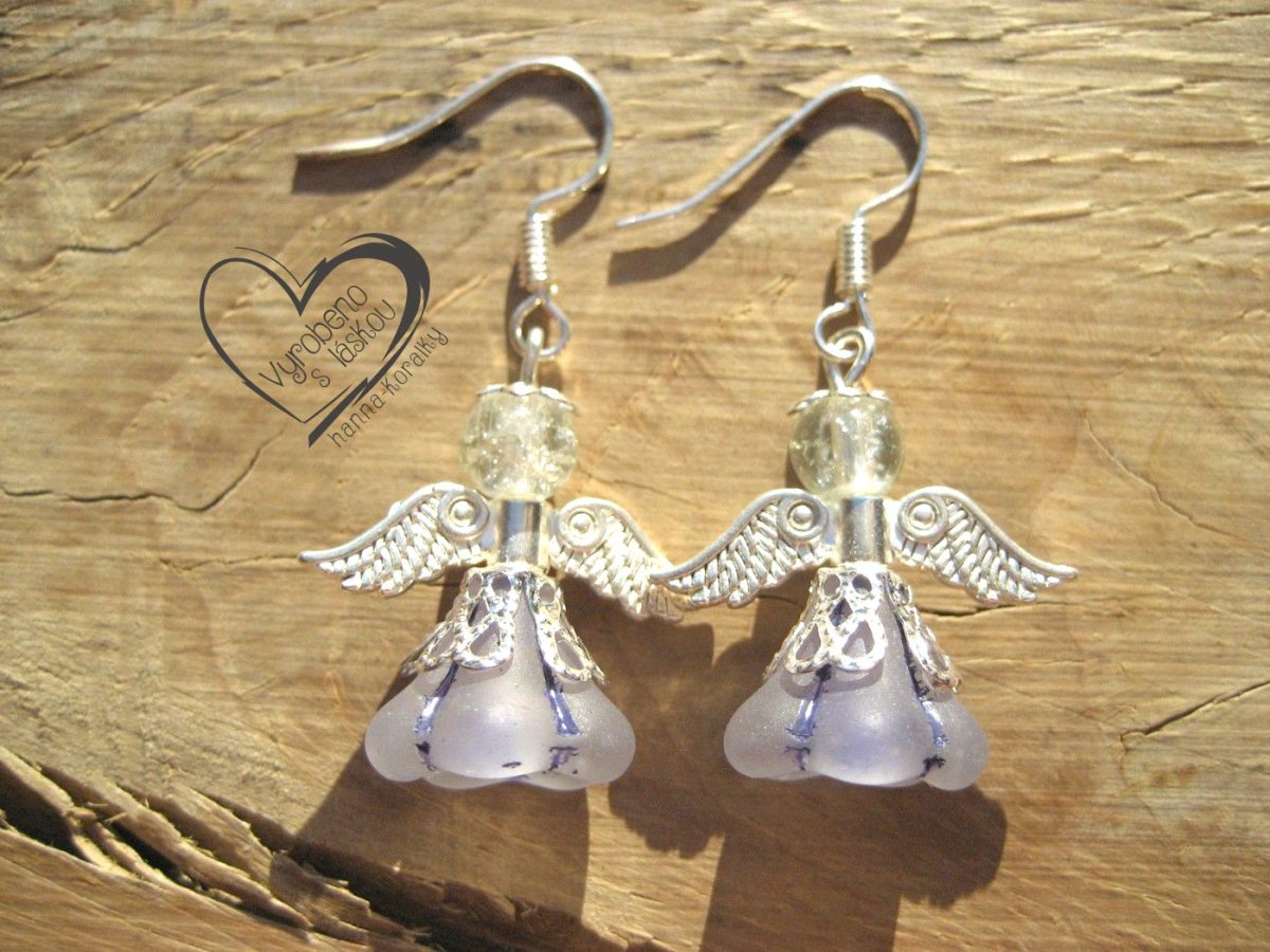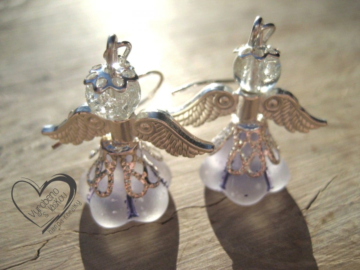 Andělské náušnice - andílci - andělíčci v kombinaci broušeného korálku v barvě - fialové, čiré a stříbrných bižuterních komponentů, délka 2,5 cm + náušnicový háček