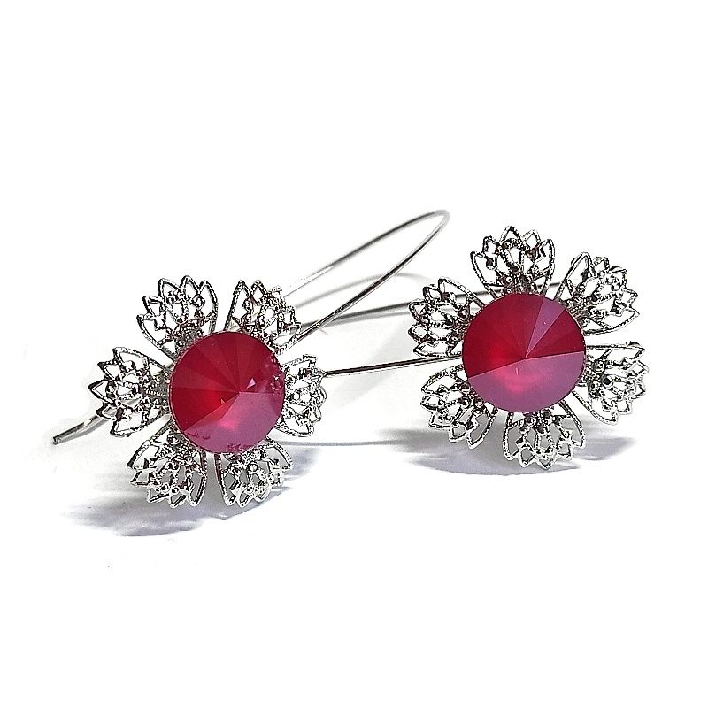 Minimalistický design, filigránový styl, nechává vyniknout brilanci broušených skleněných kamenů Swarovski Components, které nádherně odrážejí světlo při každém pohybu. Náušnice působí lehce a vzdušně – protože je navrhla sama víla.