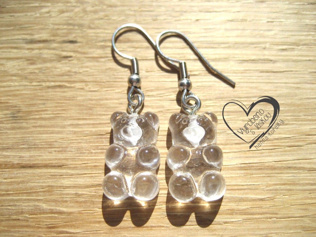 Veselé, hravé náušnice z pryskyřice - gumový medvídek ve 12 barvách - oranžová, fialová, tyrkysová, žlutá, bílá, černá, světle růžová, světle oranžová, růžová, modrá, bílá čirá, zelená - délka náušnic 3,7cm včetně náuš. háčku z nerez oceli, uvedená cena je za jeden pár náušnic, do poznámky uveďte vybranou barvu