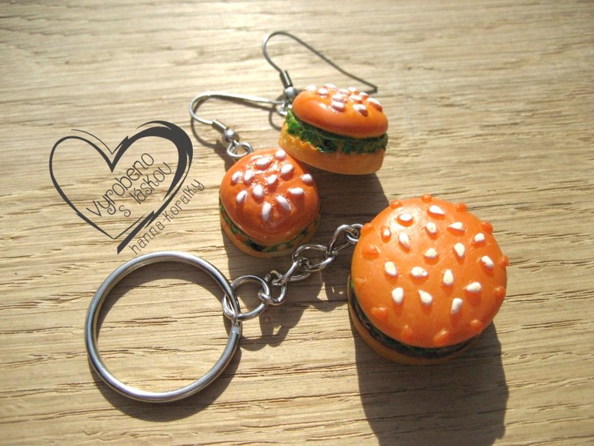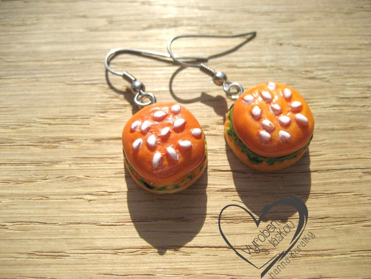 Veselé, hravé náušnice z pryskyřice - hamburgery - velikost motivu průměr 1,8cm + očko a náušnicový háček z nerez oceli, uvedená cena je za 1 pár náušnic, v nabídce je i přívěsek hamburger