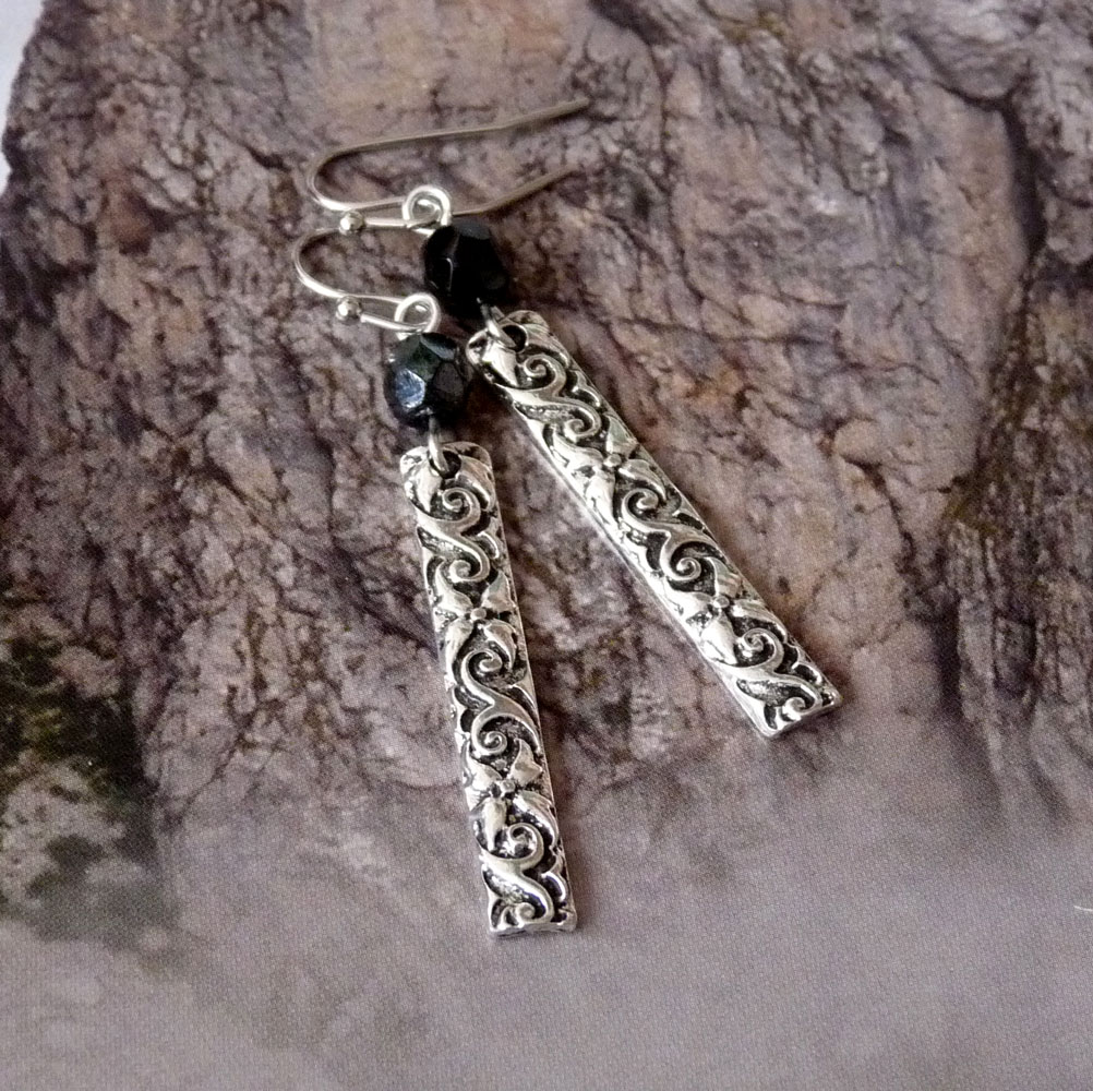 Destičky jsou s černou patinou a vhodně je doplňuje černý broušený korálek