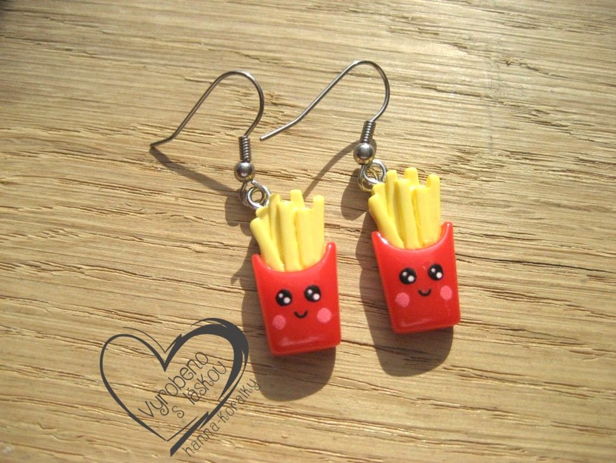 Veselé, hravé náušnice z pryskyřice - hranolky - velikost motivu 2,5 x 1,1 cm + náušnicový háček z nerez oceli, uvedená cena je za 1 pár náušnic, v nabídce je i přívěsek hranolky