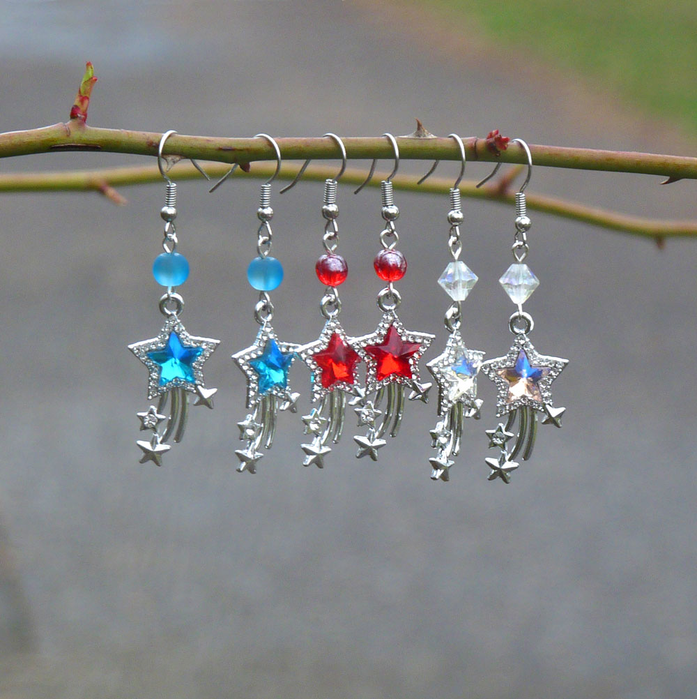 Podobné náušnice ještě v modré a červené barvě