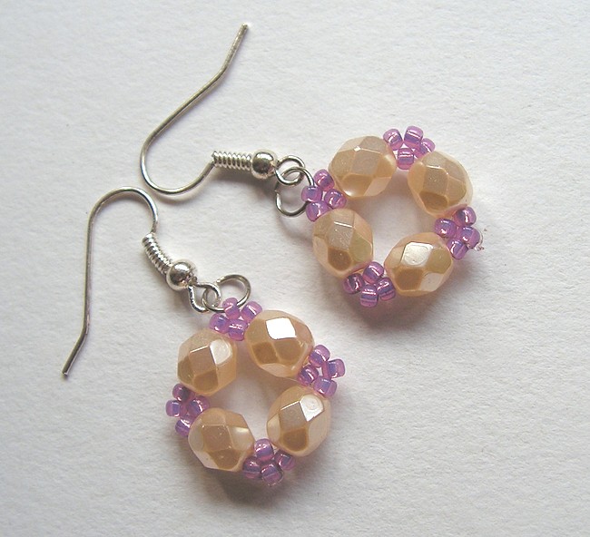 Náušnice ušité z broušených skleněných korálků - ohňovek - a japonských korálků TOHO, délka náušnic bez háčku je 2 cm.