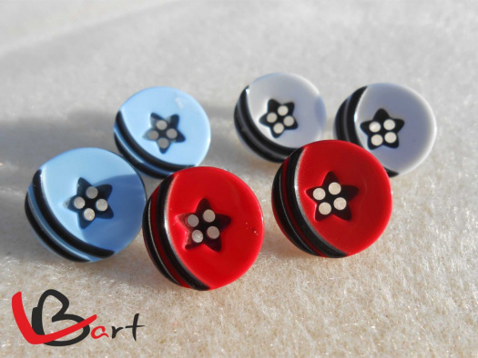 Plastové knoflíky na puzetce s hvězdou a čáry.