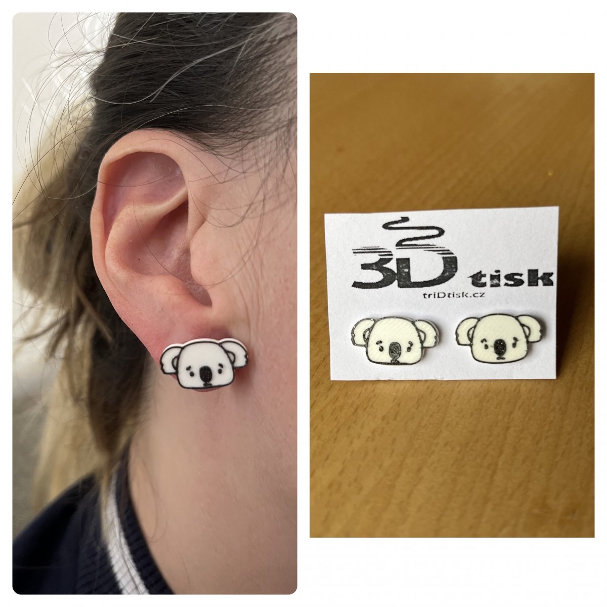 Náušnice ve tvaru koaly. Zapínání z nerez oceli. Rozměr cca 14mm. Materiál PLA - biologicky odbouratelný.