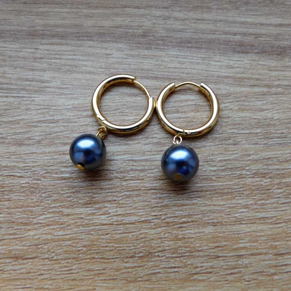 Kulaté větší sladkovodní tmavé perly, průměr 10 mm, jsou velkou ozdobou těchto naušnic