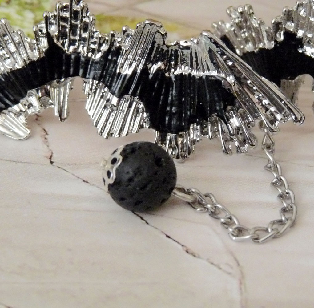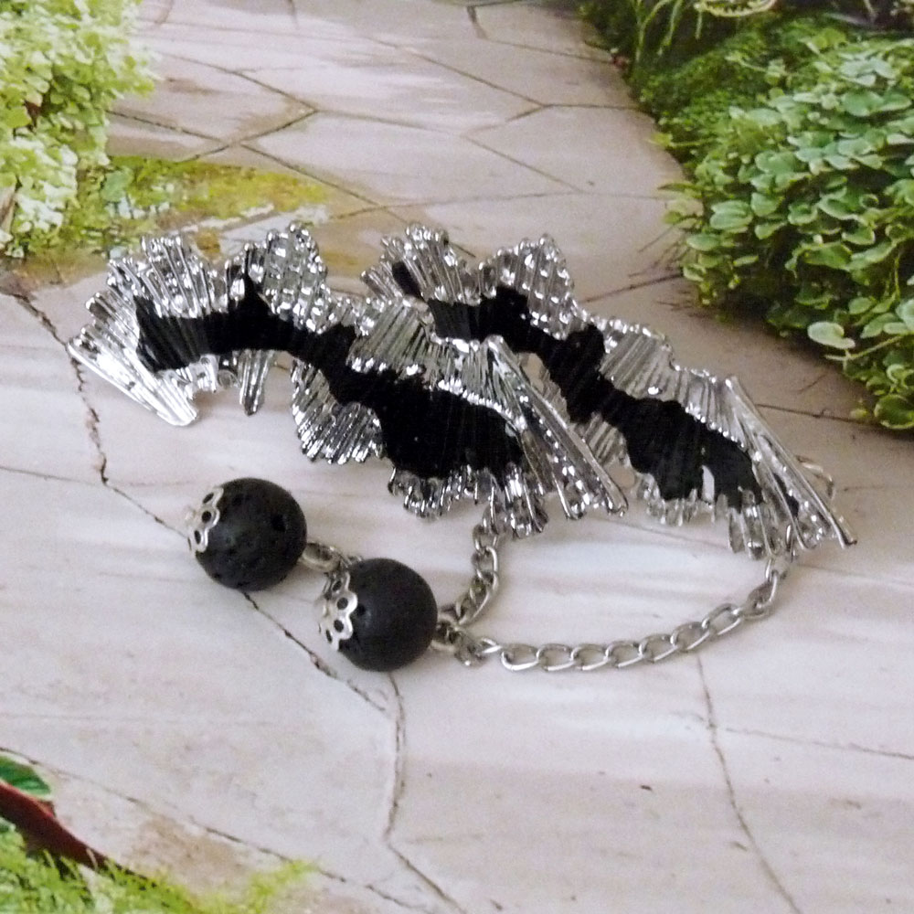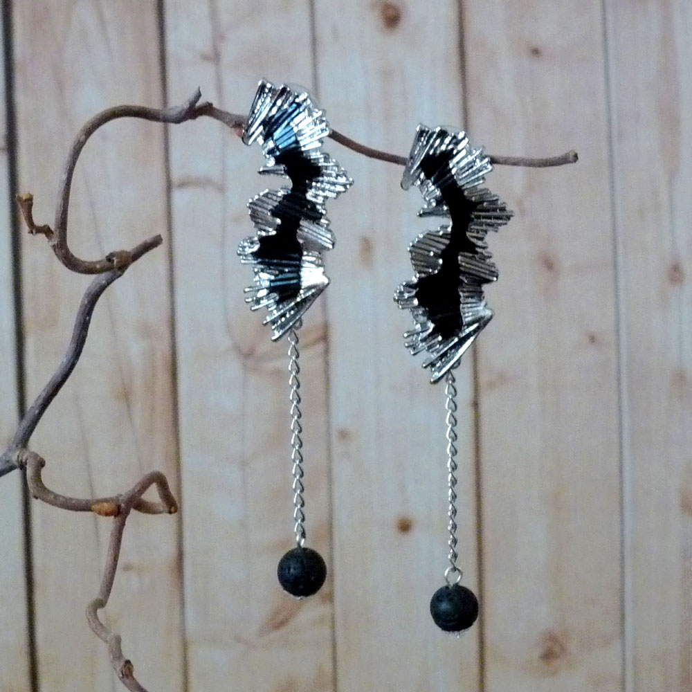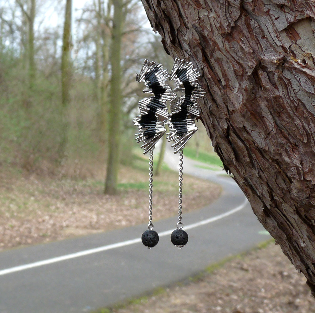Jsou tvořeny dlouhým zvlněným komponentem ve stříbrné barvě s černou čmouhou uprostřed, který nese jemný řetízek s lávovou kuličkou
