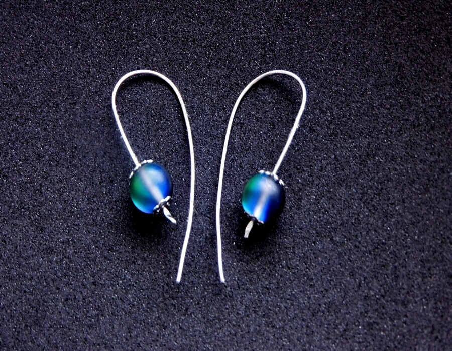 Naušnice jsou celé vyrobené z protialergického drátku Osteofix, jsou lehce tepané, leštěné. Jejich délka je 4,2 cm, uvnitř tohoto páru je krásný skleněný zirkonit, o průměru 10mm , nerezové kloboučky.......Vrchní kloboučky jsou pečlivě přilepeny ke kamínku.Při pohybu krásně opalizuje.....