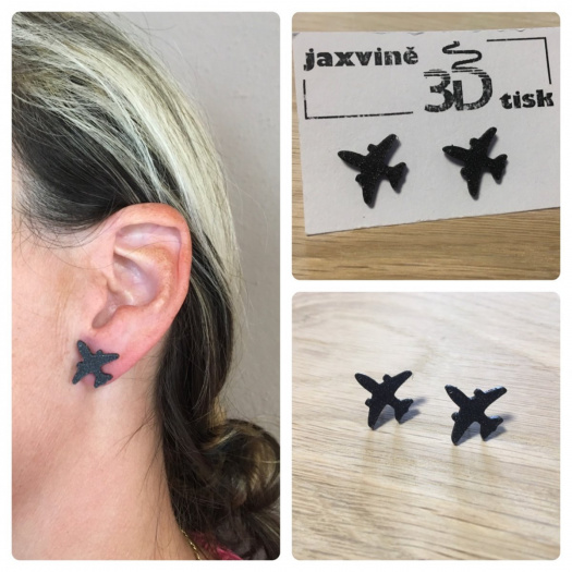 Náušnice ve tvaru letadla. Zapínání z nerez oceli. Materiál PLA - biologicky odbouratelný.