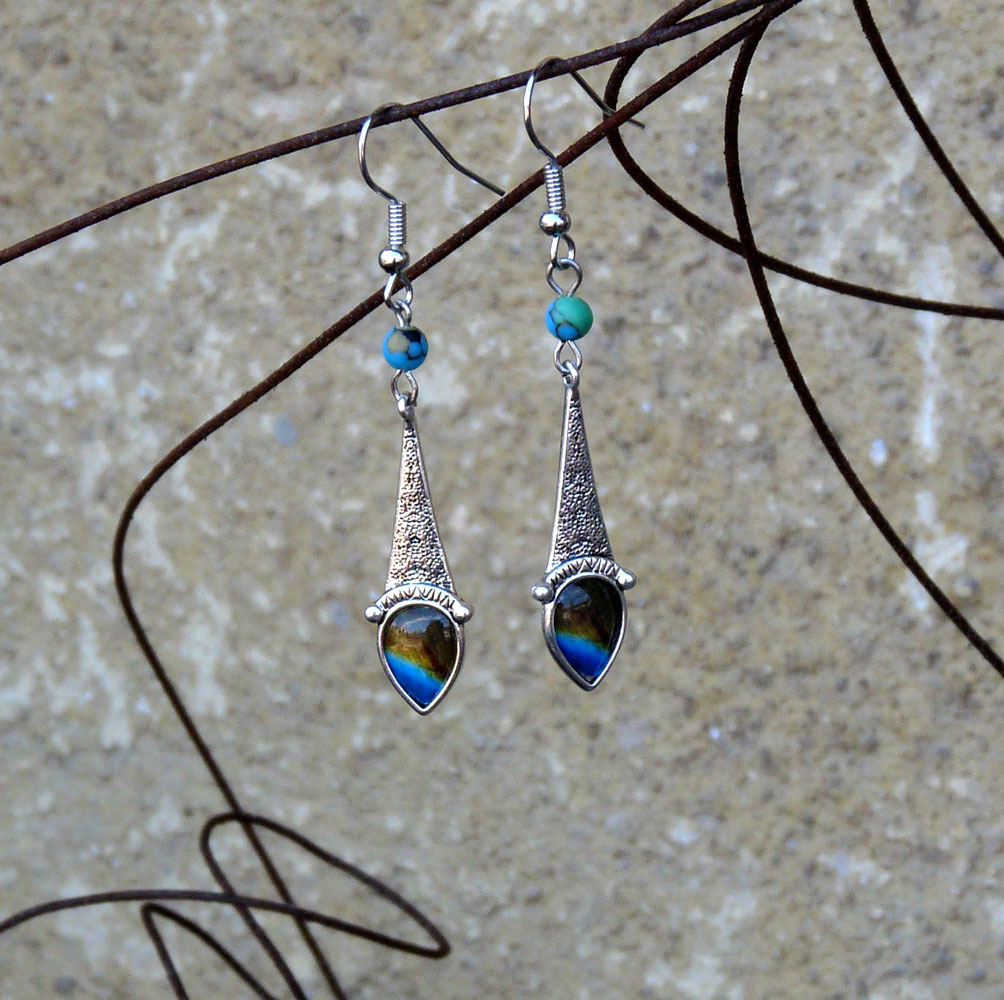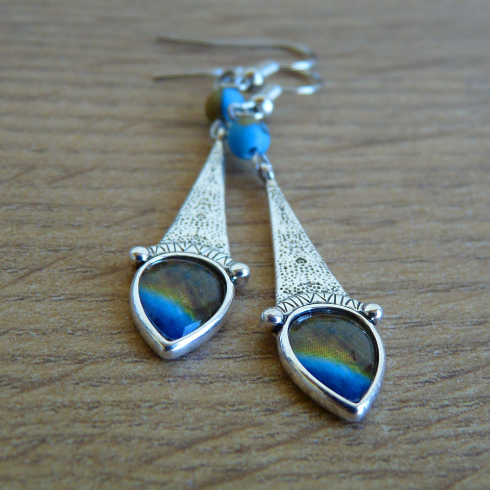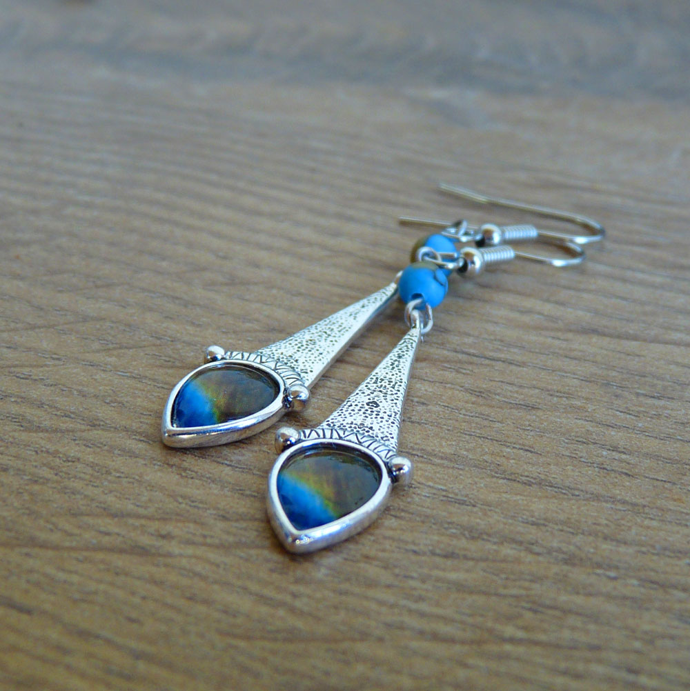 Přívěsek má malé lůžko s hnědomodrým motivem zalitým křišťálovou pryskyřicí