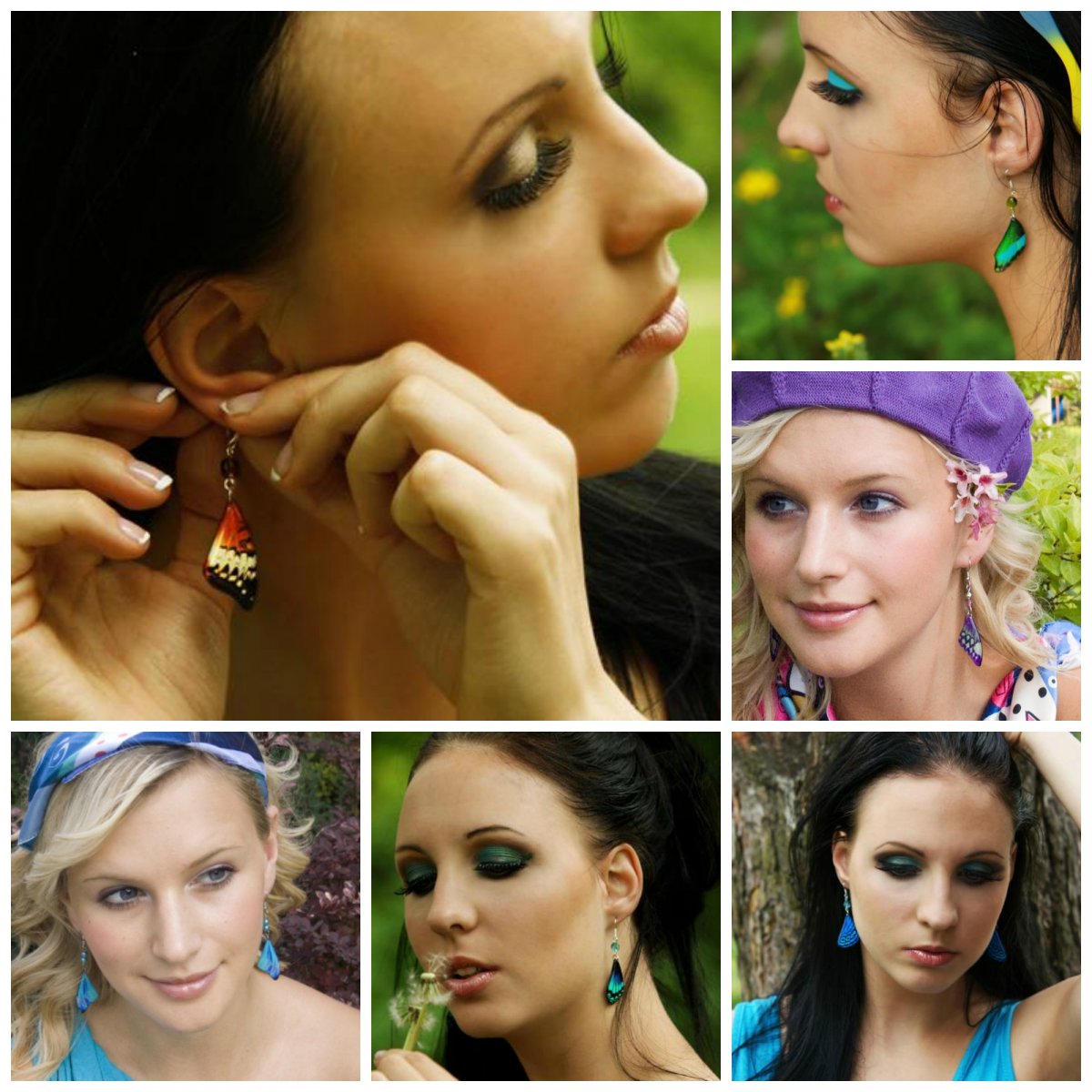 Originální náušnice s autorským motivem křídel motýlků- motiv je oboustranný!!. Háčky na náušnicích z kvalitní z chirurgické oceli. (háčky mají i silikovoné zarážky proti vypadnutí, na přání můžu háčky vyměnit za mechanické zapínání nebo i na elegantní klipsy pro ty co nemají dírky v uších) Náušnice jsou vyrobeny z  resinu (imitace skla) co jim dodává krásny vzhled a křídla jsou tak jako ,,živé"! Náušničky jsou lehké (netahaji ušní dírky) a při chůzi se jemně pohupují - co připomíná poletování motýlků. Na těchto náušničkách budete jednoduše ,,ulítávát" !!! Mrkající