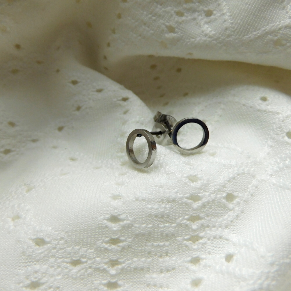 Naušnice kroužky z nerezu , navlečené malé hematitové srdíčko....