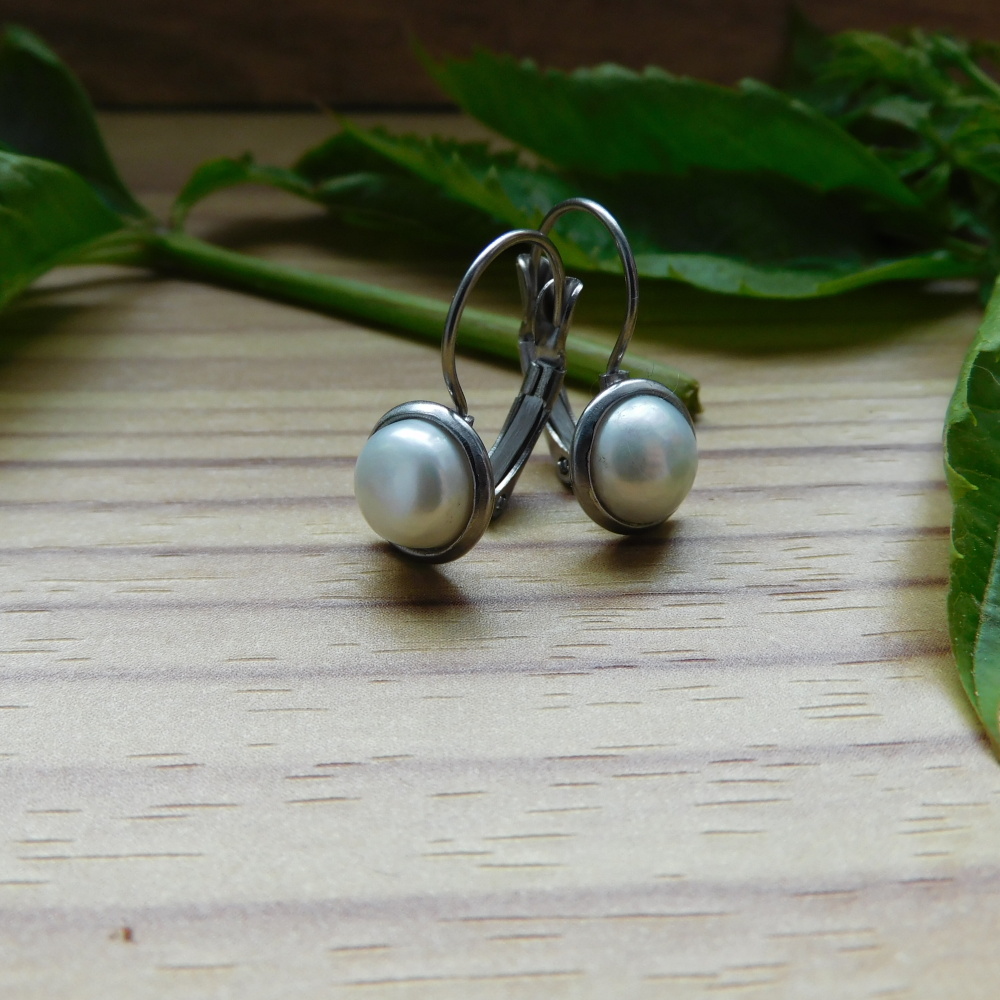 Lůžko vyrobené z protialergické nerezové oceli , nevyvolává alergie, ani nečerná a nemění barvu, doplněné kameny, tentokrát pravá bílá perlička
