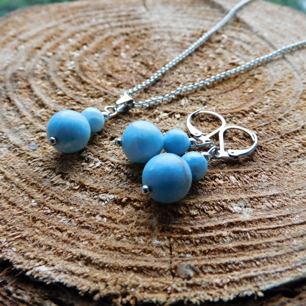 Naušnice z chirurgické oceli se dvěma kuličkami krásného larimaru.