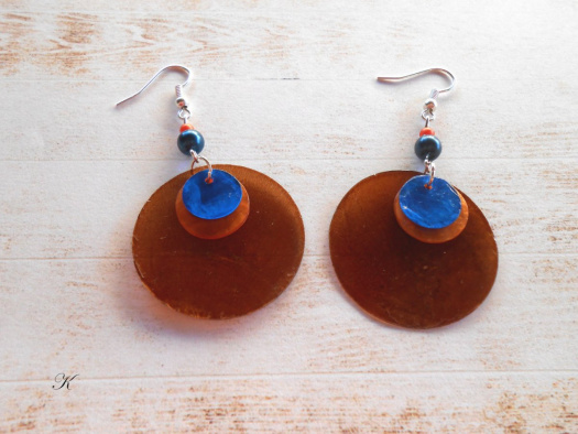 Náušnice perleť hnědá+oranžová+modrá (121/19)