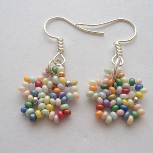 Náušnice z barevných korálků. Velikost: Ø 1,5 cm.