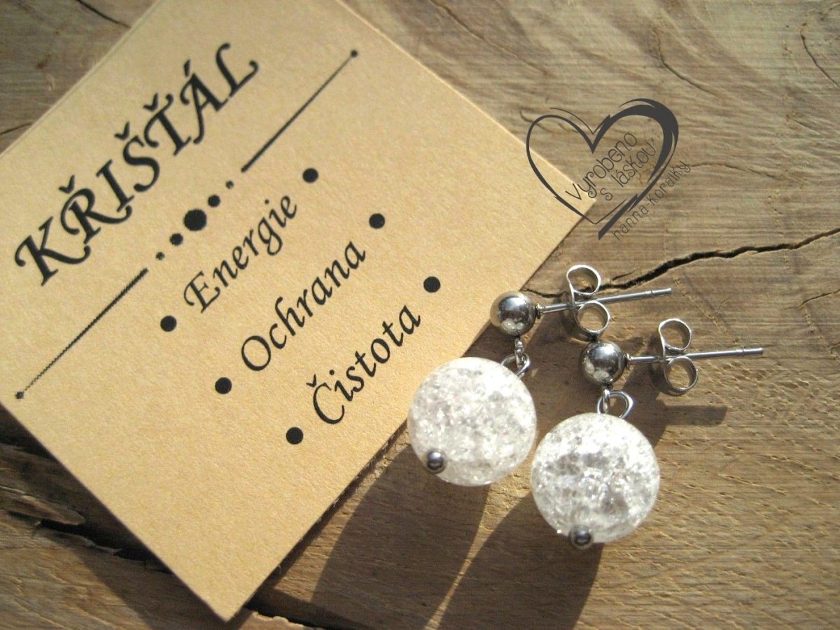 Náušnice puzety z nerez oceli s minerálem - Křišťál - velikost minerálního korálku 1cm.