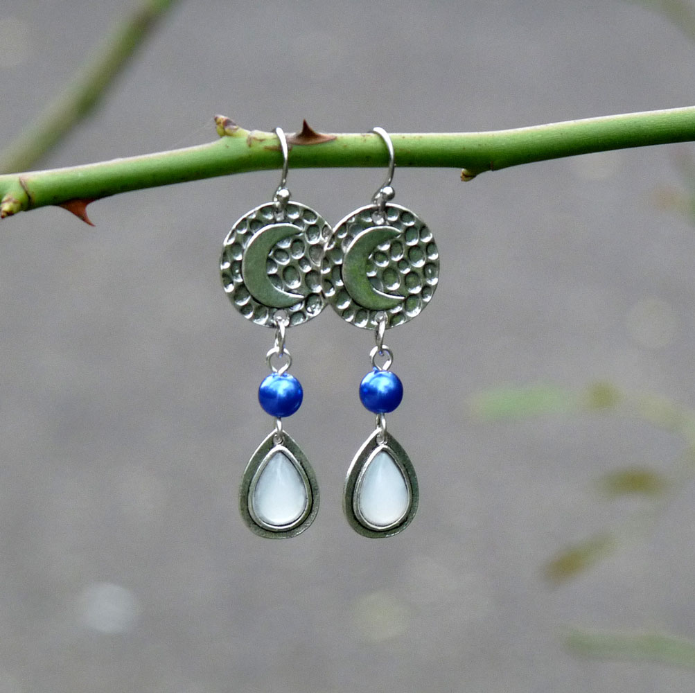 Visací náušnice s kulatým přívěskem, který má vyražený půlměsíc