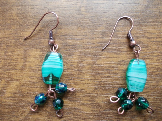 náušnice ze zelených korálků, délka bez háčku 3 cm s afroháčkem