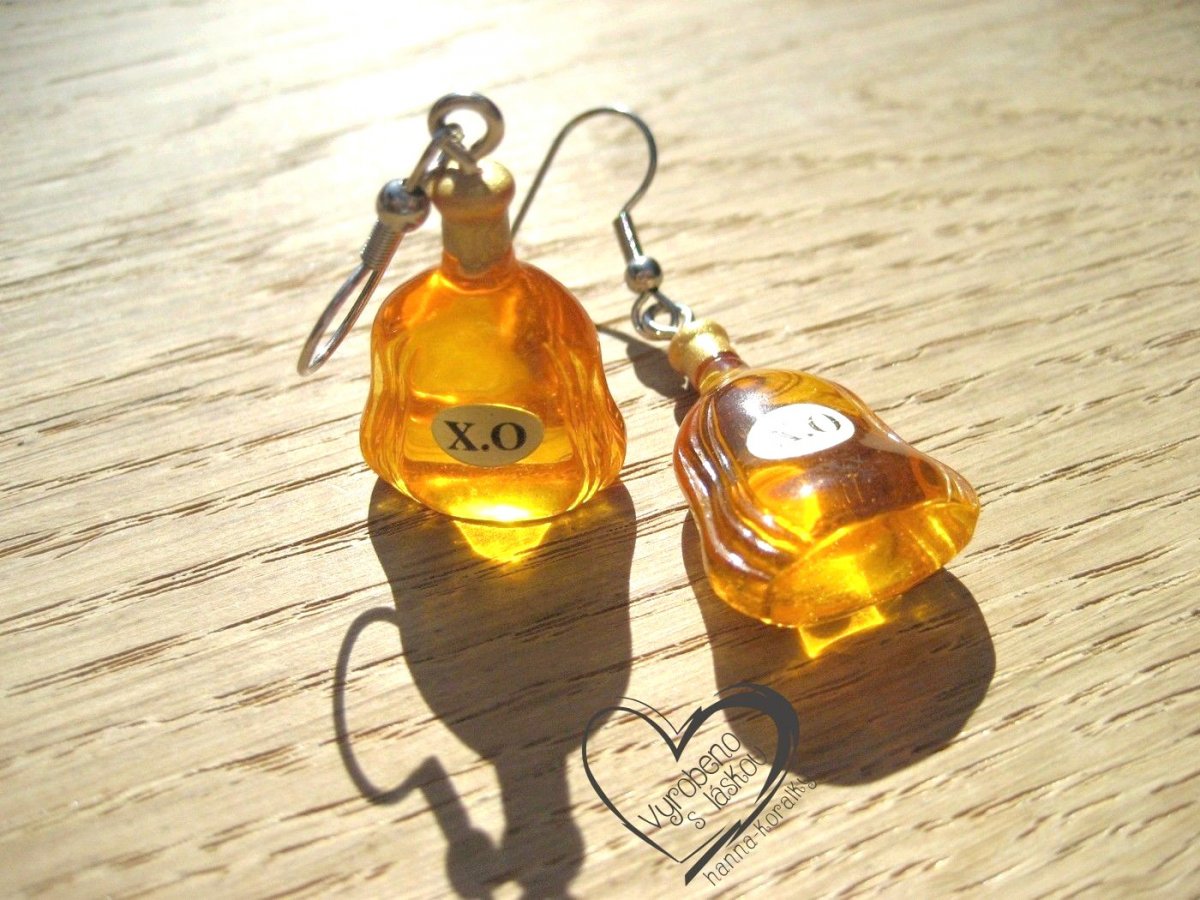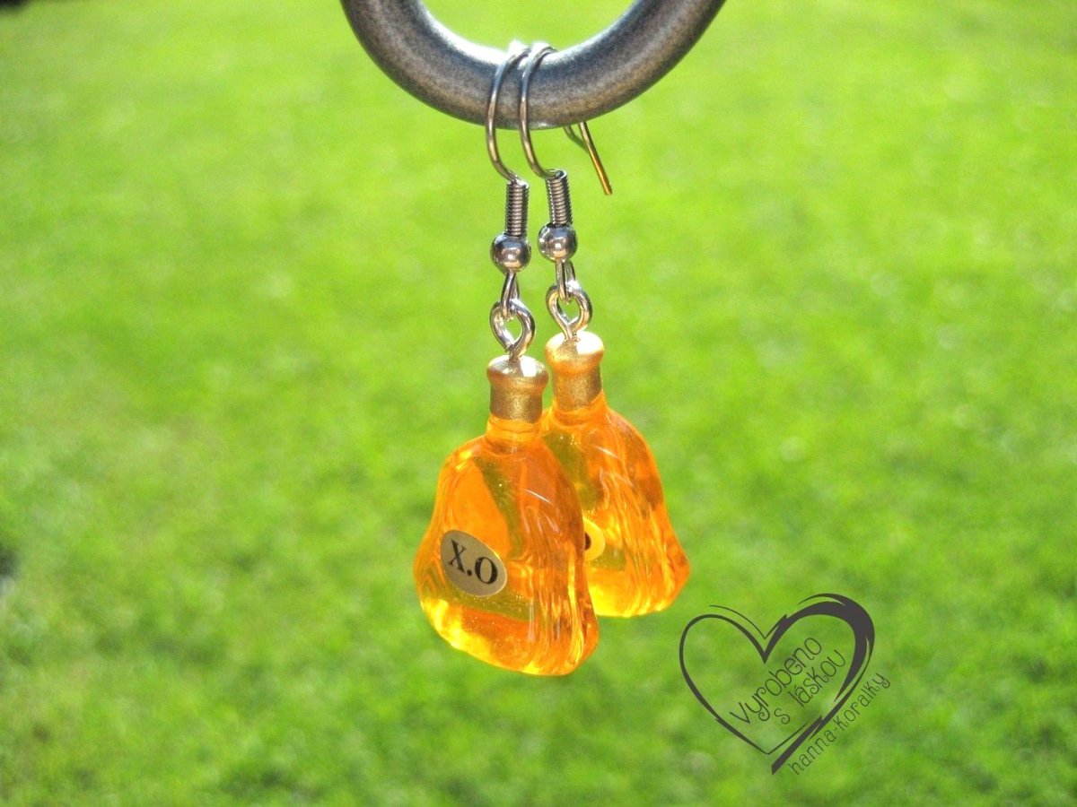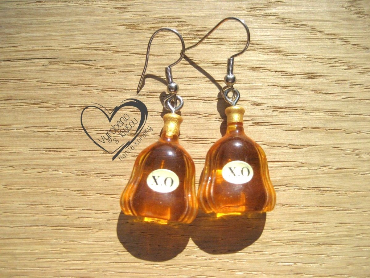 Alkoholové náušnice z pryskyřice - mini láhev rumu - výška motivu 2,5cm + naušnicový háček z nerez oceli, uvedená cena za 1 pár náušnic