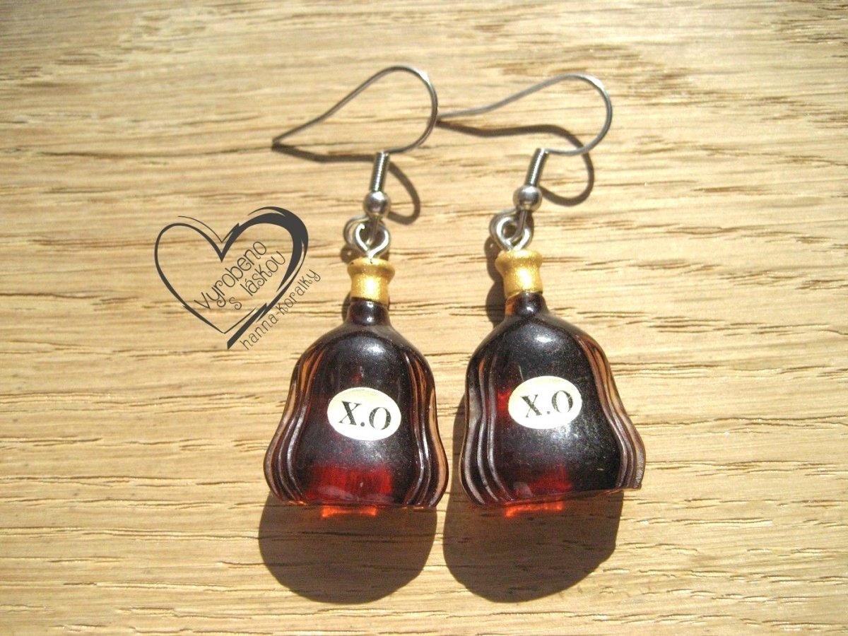 Alkoholové náušnice z pryskyřice - mini láhev rumu - výška motivu 2,5cm + naušnicový háček z nerez oceli, uvedená cena za 1 pár náušnic
