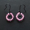 Autorské drátované náušnice z černého žíhaného 1 mm drátu a růžových rokajlových korálků. Velikost korálku cca 4 mm.