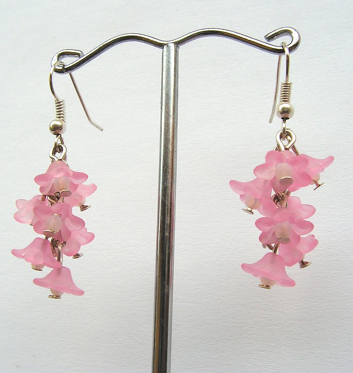 Něžné náušnice vyrobené z akrylových zvonečků a broušených korálků. Délka náušnic bez háčku je 2,7 cm