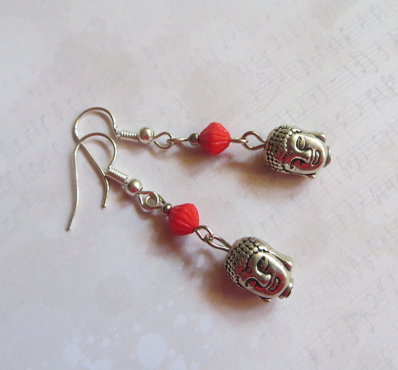 Delší náušnice vyrobené ze skleněných korálků a komponentů z bižuterního kovu. Délka náušnic bez háčku je 3 cm.