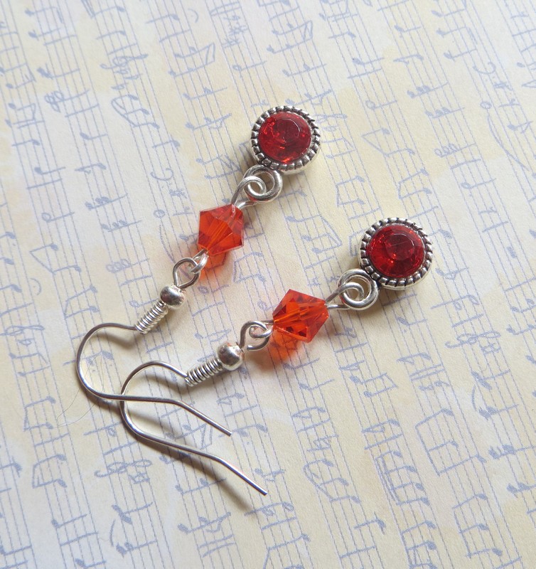 Náušnice vyrobené z komponentů se skleněnými šatonky, broušených korálků - cínovek - a komponentů z bižuterního kovu. Délka náušnic bez háčku je 2,3 cm.