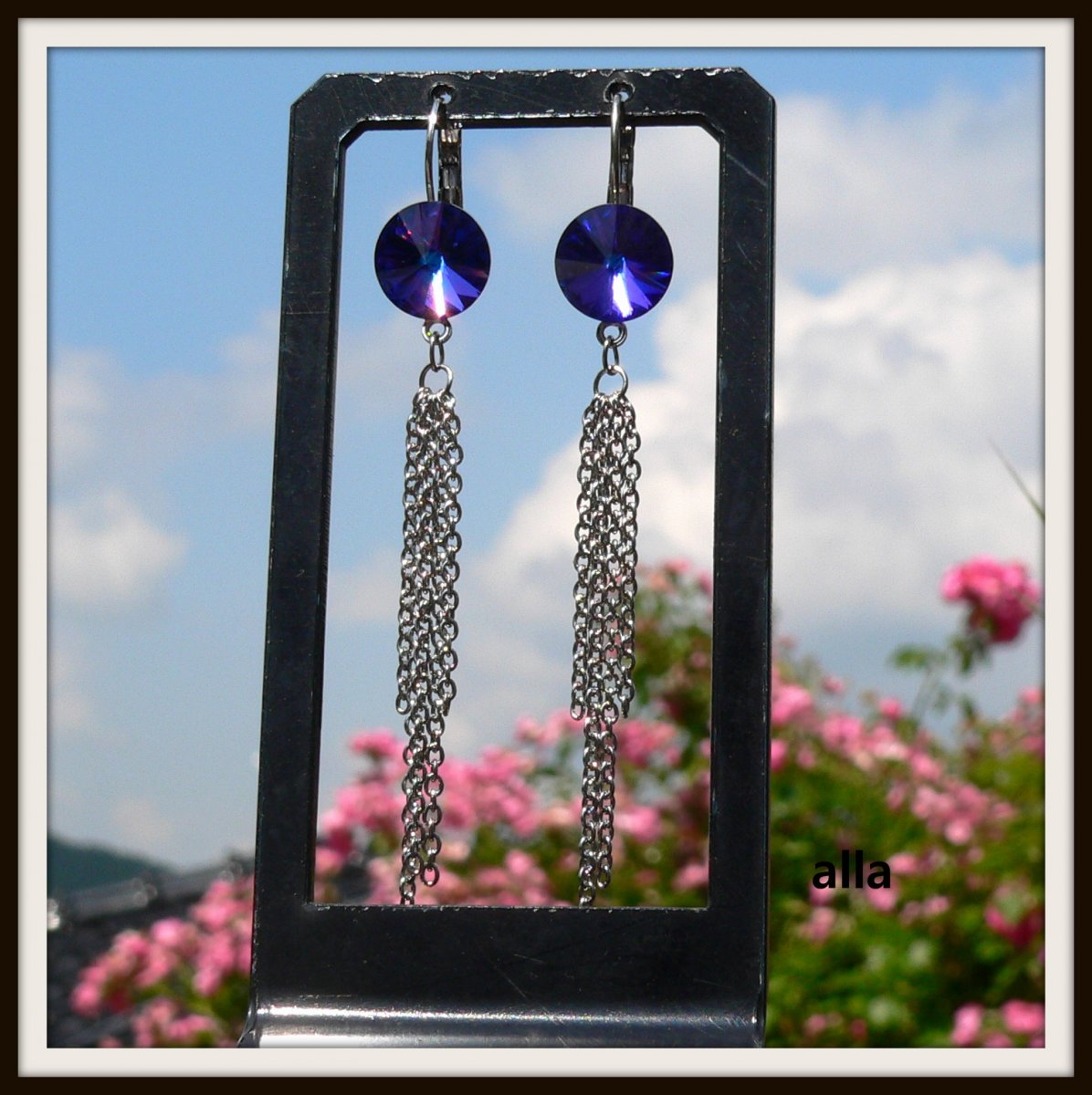 Náušnice jsou s kamínky - rivoli - Swarovski, které jsou vyrobené v Rakousku, barva tm.modrá.