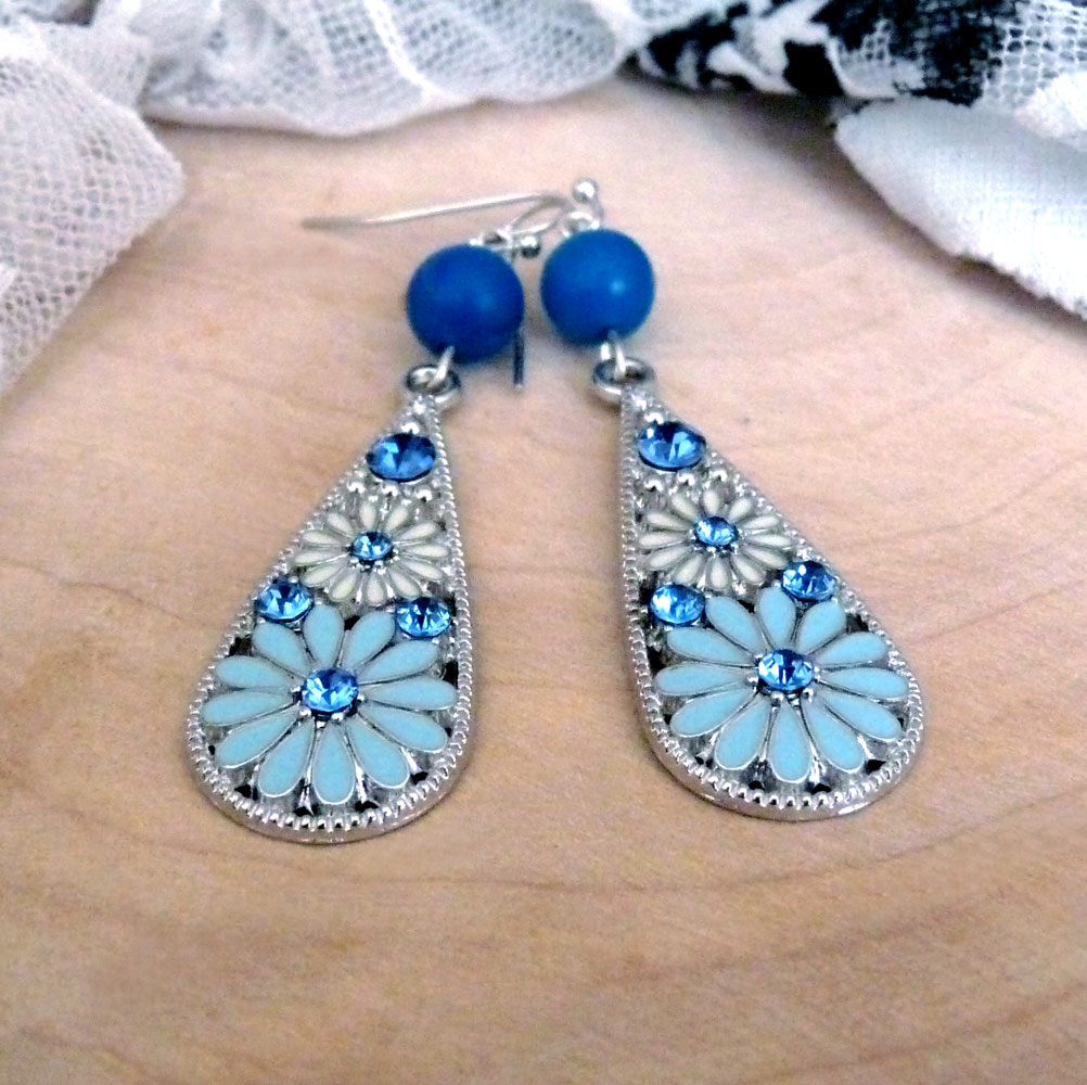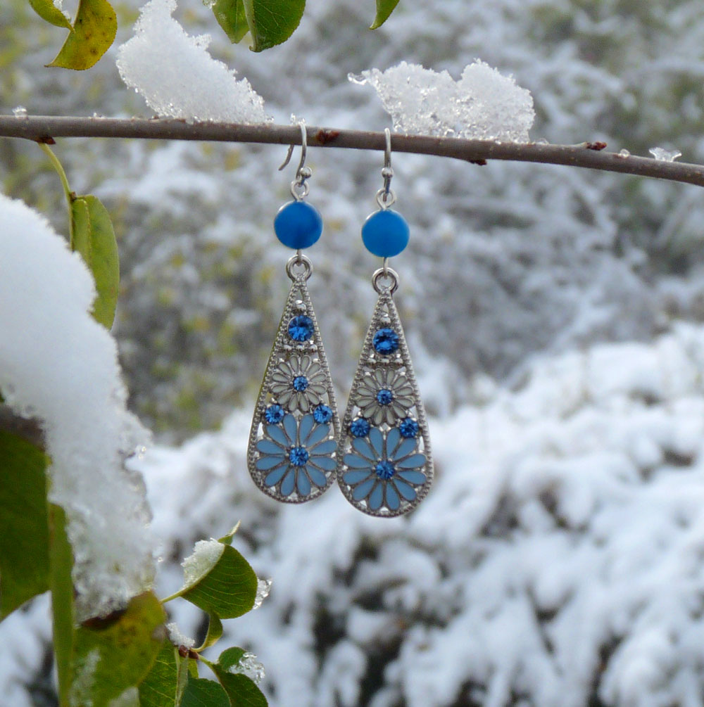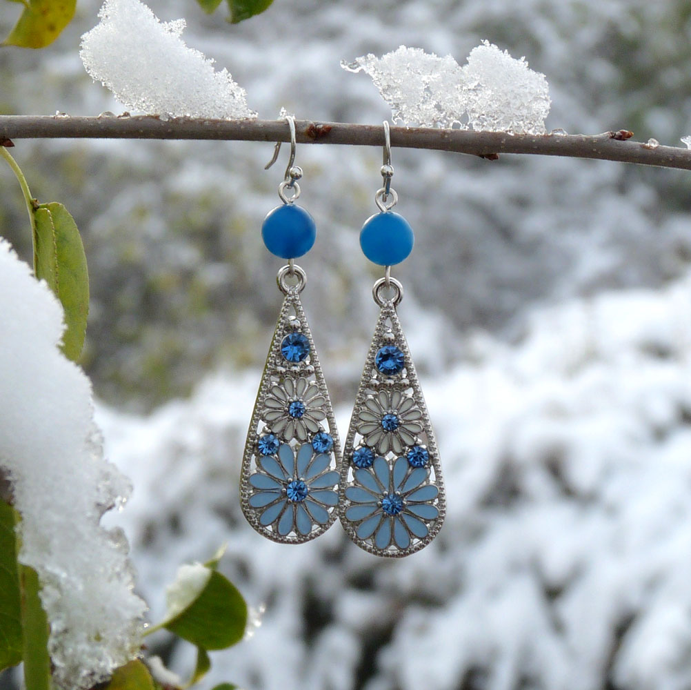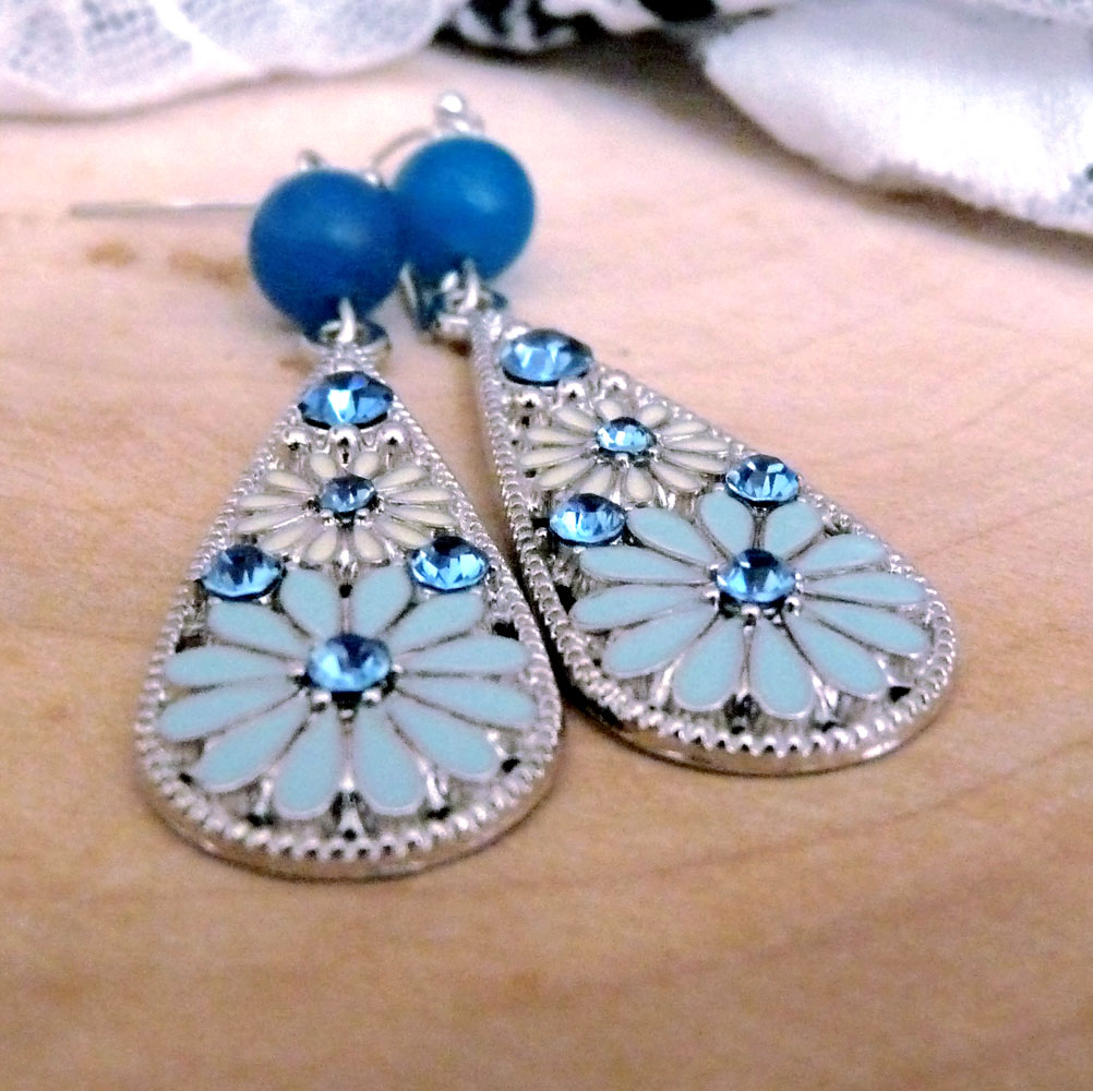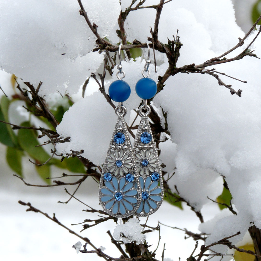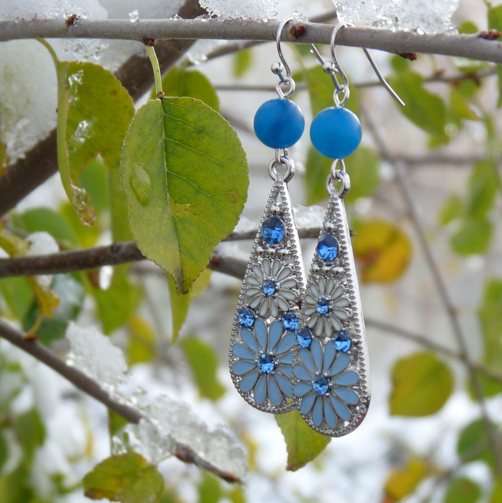 Tvoří je nádherný přívěsek s květinami a světle modrými broušenými kamínky