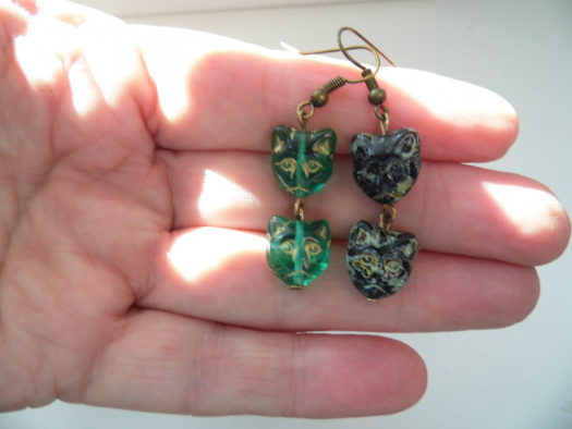 náušnice visací - 2x2ks korálek skleněný hlavy kočičkek dvou různých barev