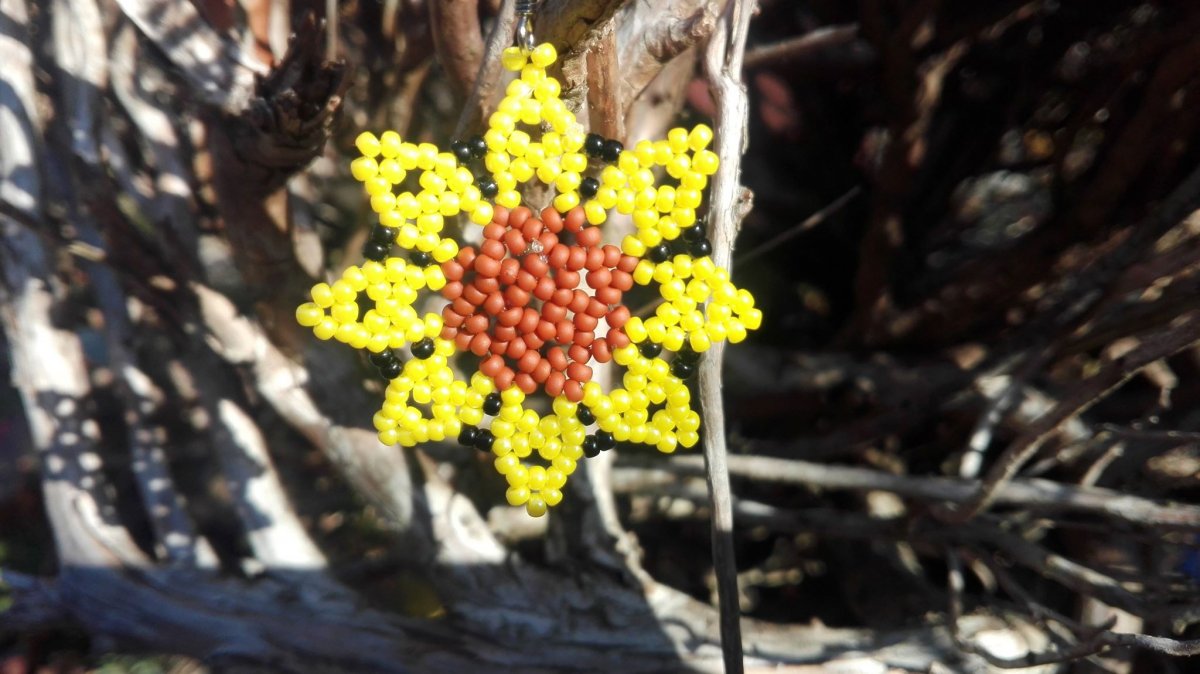 Šité naušničky z kvalitních japonských Toho korálků. Naušničky připomínají slunečnice .