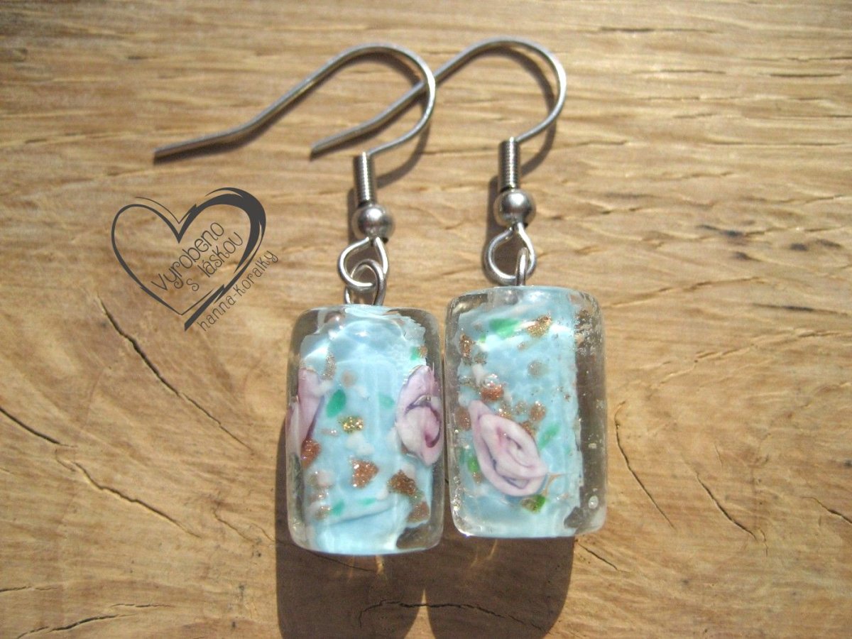 Náušnice z vinutek - vinutých perel, ve tvaru válečku ve světle modré barvě, délka vinutky 1,5cm, nýt i naušnicový háček z nerez oceli