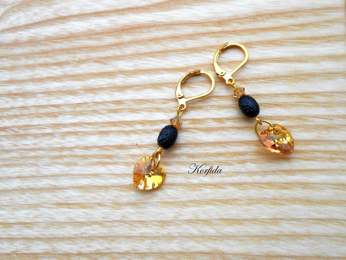 Náušnice se Swarovski srdíčky 10,3x10 - barva: CRYSTAL METALLIC SUNSHINE a Swarovski sluníčky - barva: CRYSTAL METALLIC SUNSHINE.