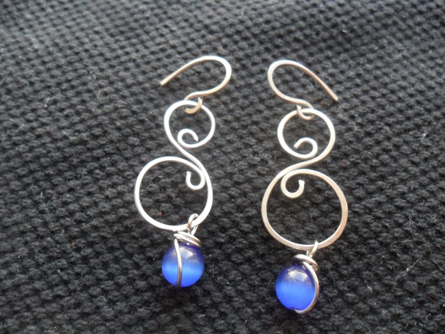 Náušnice z tepane chirurgické oceli a koralků modrých kočičí oko.