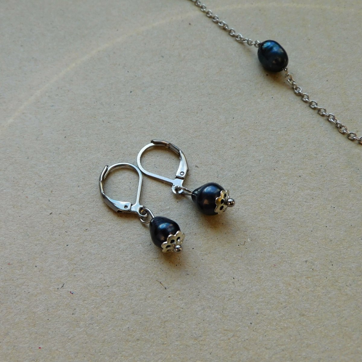 Materiál: nerez, pravá tmavá perla