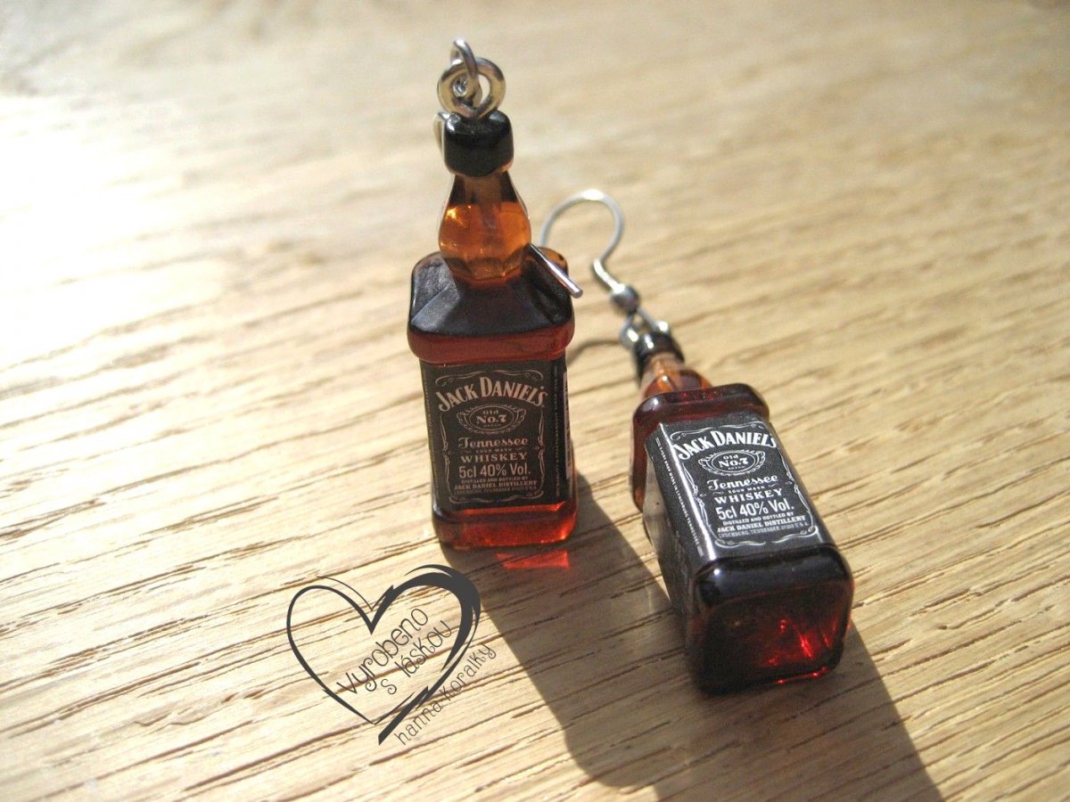 Vtipné náušnice z pryskyřice - mini láhev - alkohol - whisky - výška motivu 3,3 cm + naušnicový háček z nerez oceli, uvedená cena za 1 pár náušnic