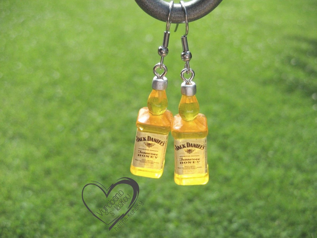 Vtipné náušnice z pryskyřice - mini láhev akohol - whisky - výška motivu 3,3 cm + naušnicový háček z nerez oceli, uvedená cena za 1 pár náušnic