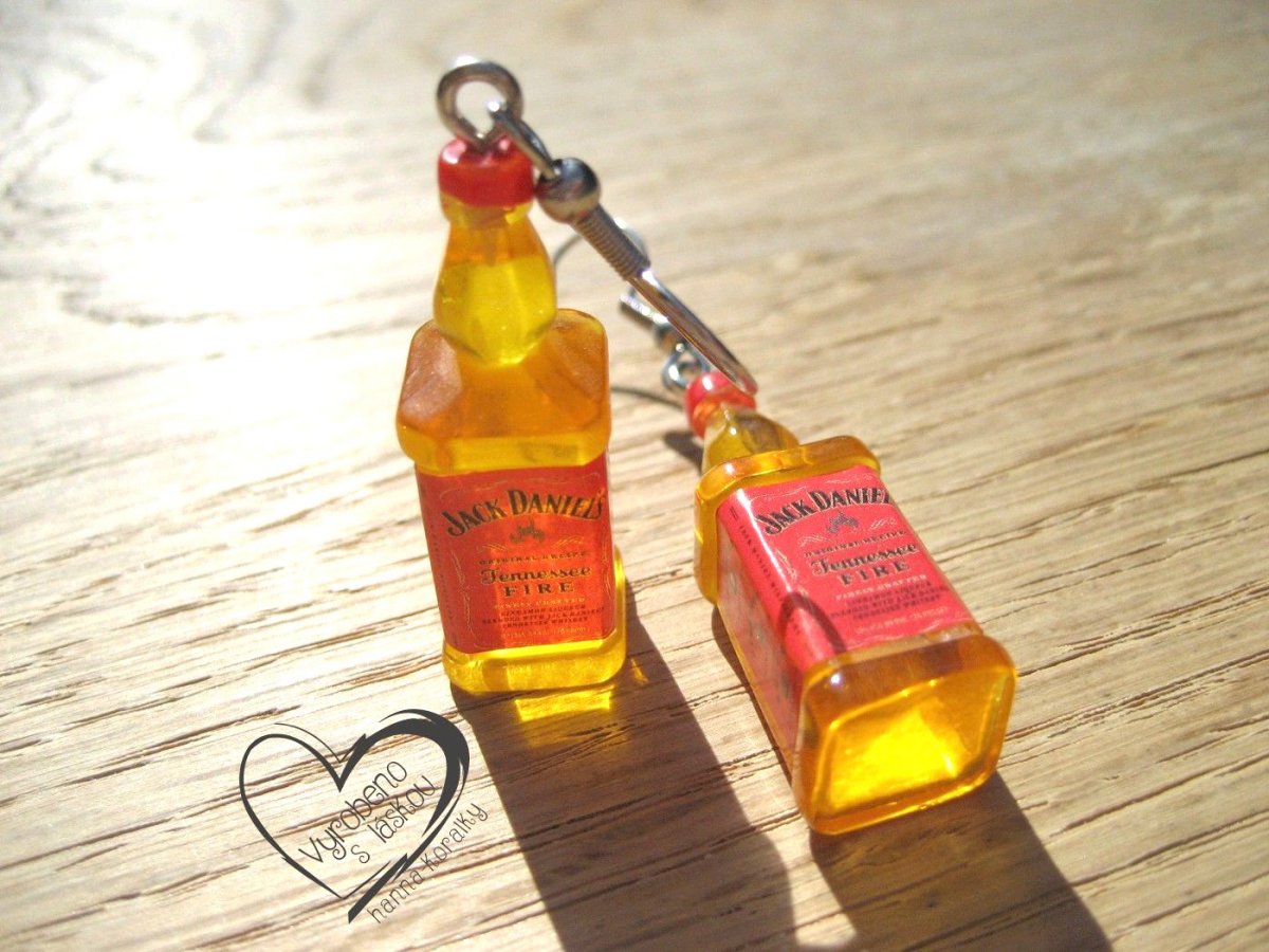 Vtipné náušnice z pryskyřice - mini láhev akohol - whisky - výška motivu 3,3 cm + naušnicový háček z nerez oceli, uvedená cena za 1 pár náušnic
