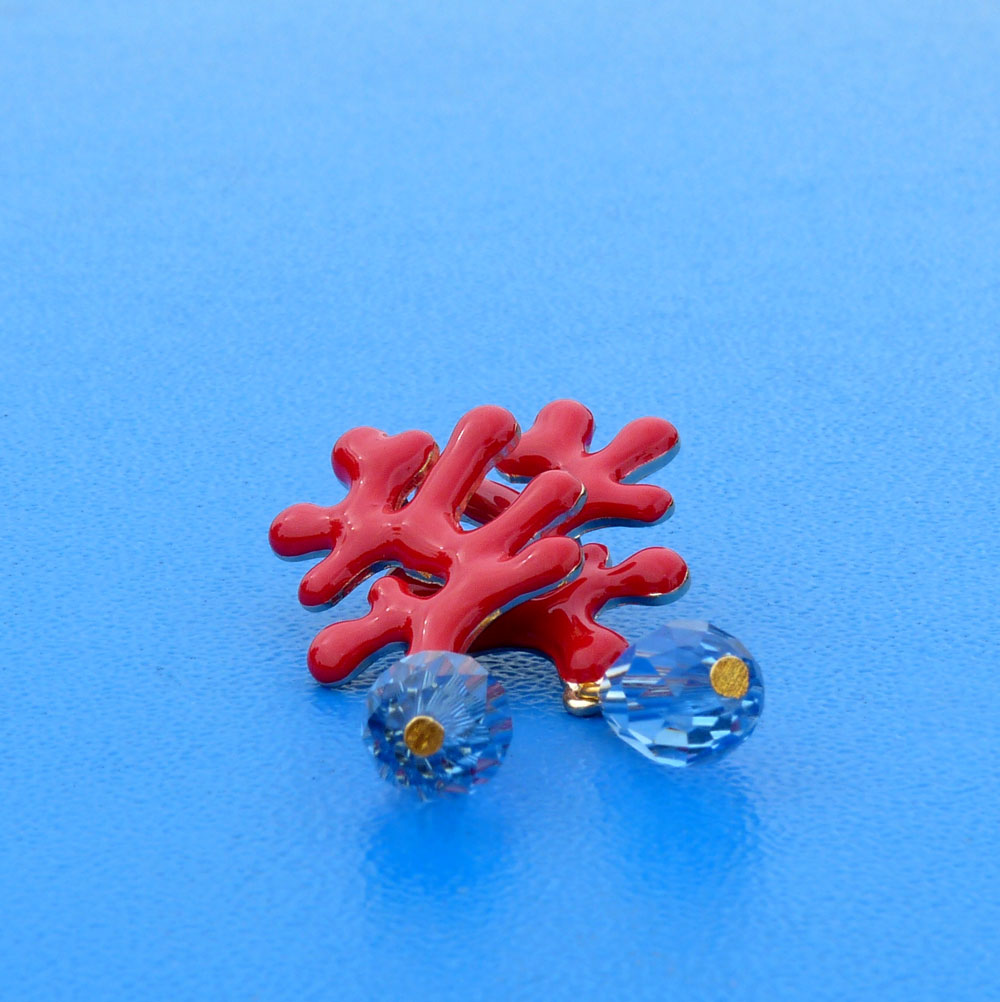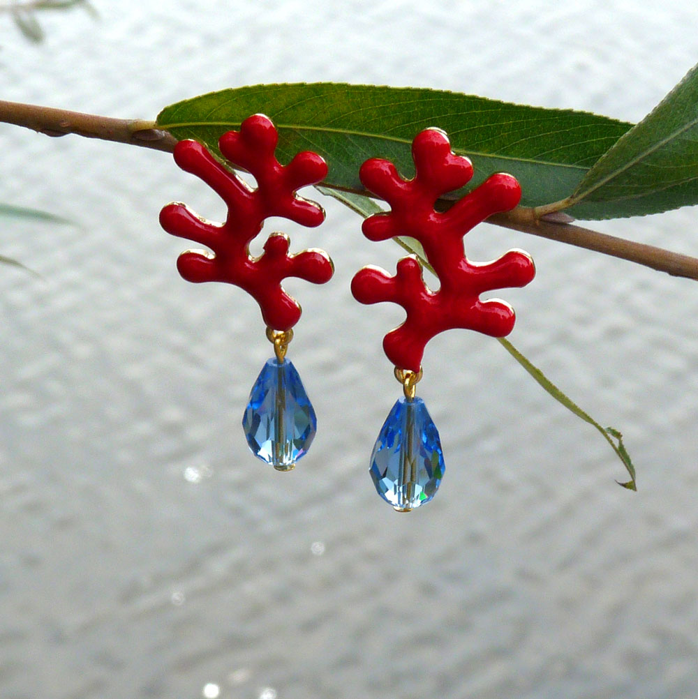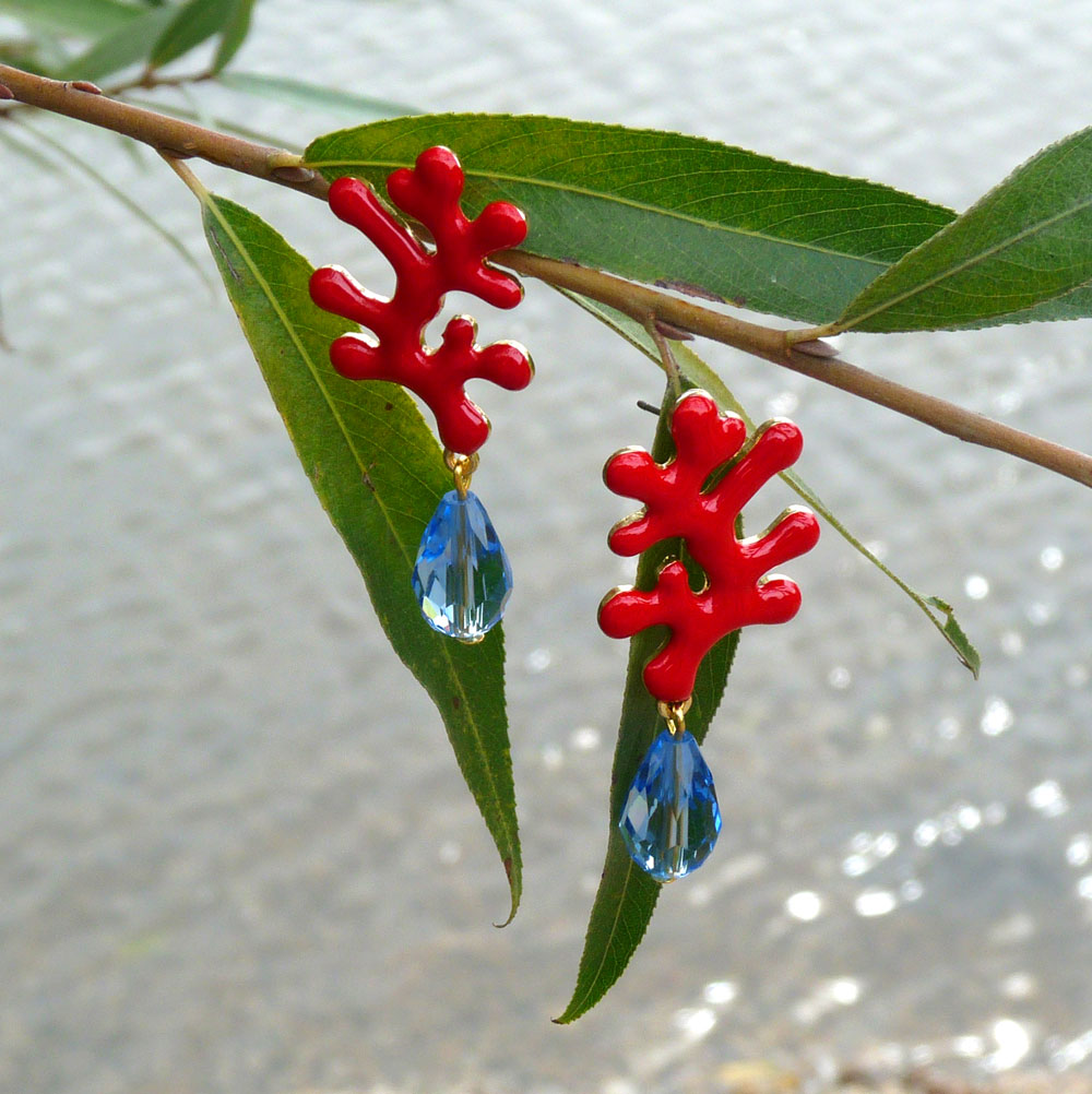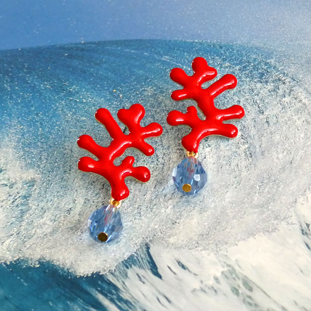 Náušnice s větší větvičkou mořského korálu a kapkou vody