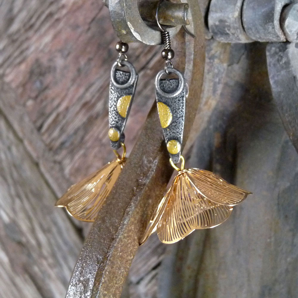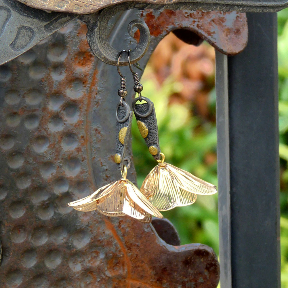 tvořené velkým květem ve zlaté barvě jemně síťovaným s broušenou pokovanou ohňovkou v kouřovozlaté barvě