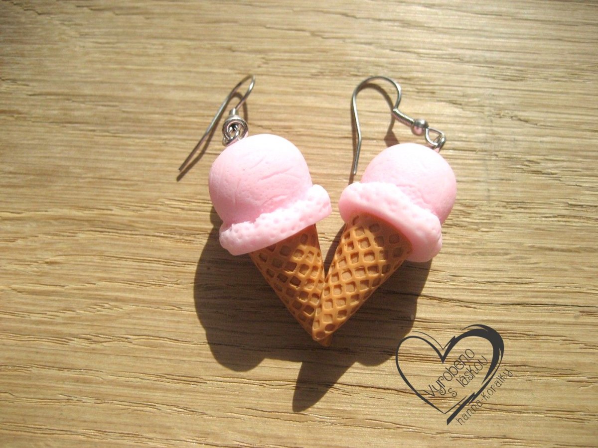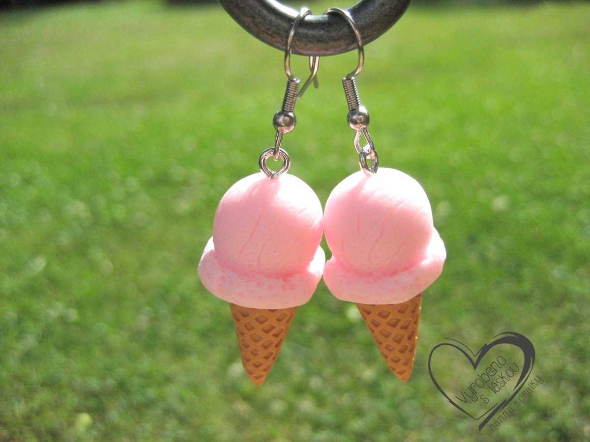 Veselé, hravé, větší náušnice z pryskyřice - zmrzka zmrzlina - malinová, velikost motivu bez očka 1,5 x 3,5 cm + náušnicový háček z nerez oceli, v nabídce jsou i další příchutě :)