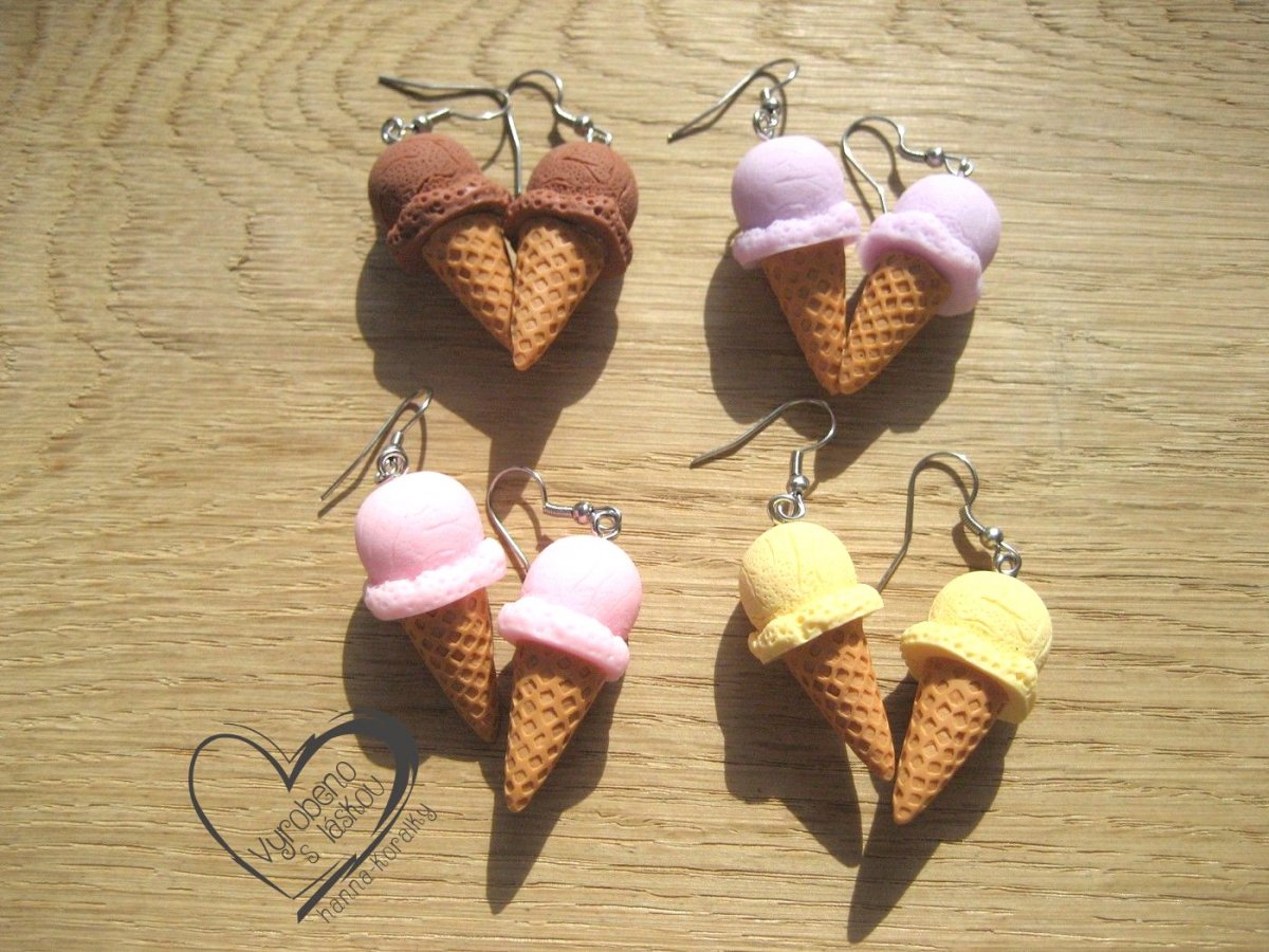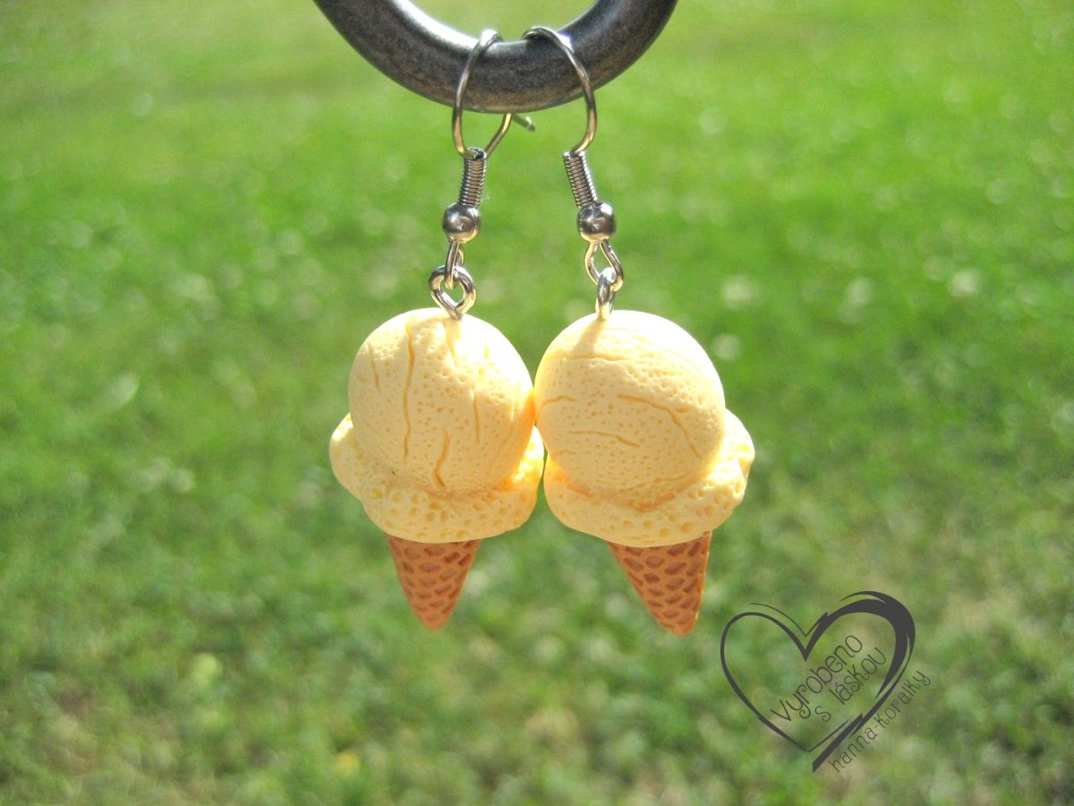 Veselé, hravé, větší náušnice z pryskyřice - zmrzka zmrzlina - vanilková, velikost motivu bez očka 1,5 x 3,5 cm + náušnicový háček z nerez oceli, v nabídce jsou i další příchutě :)