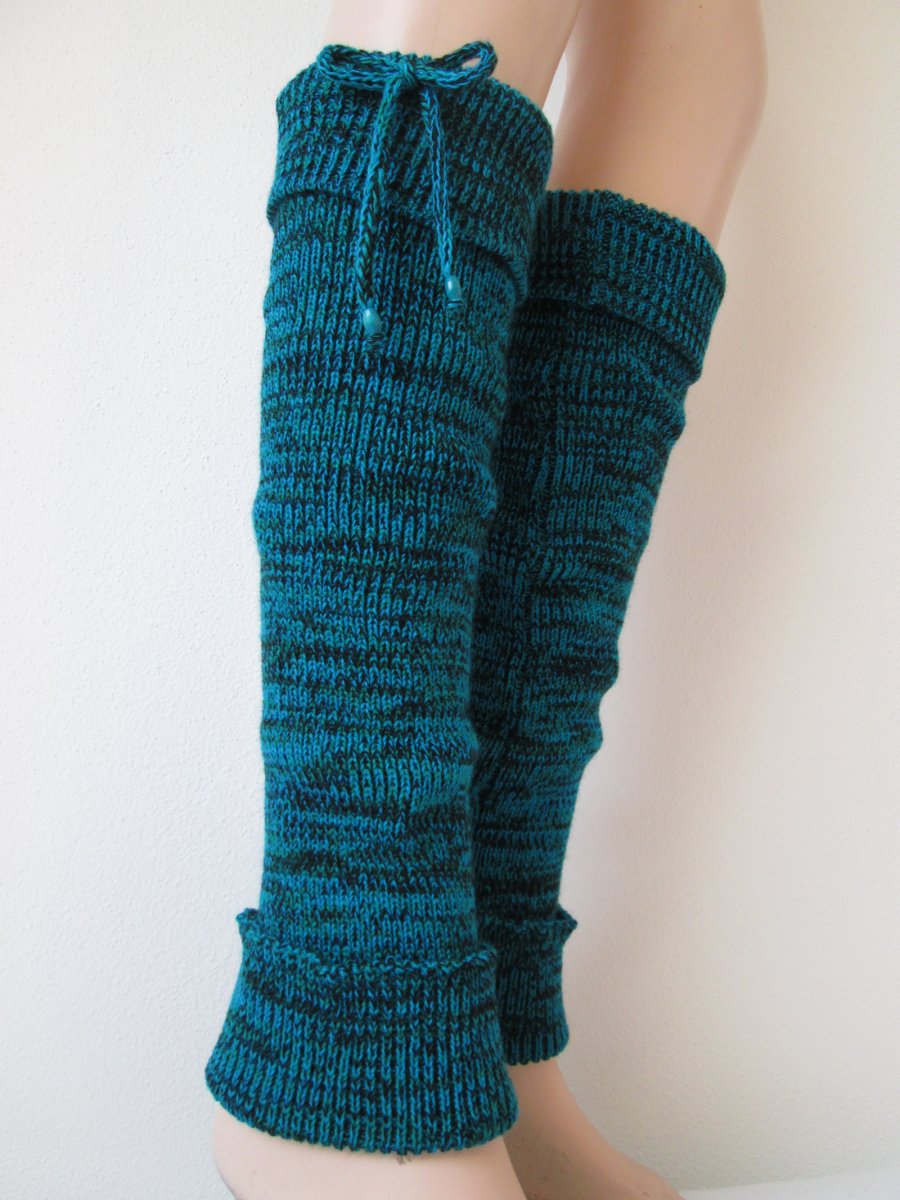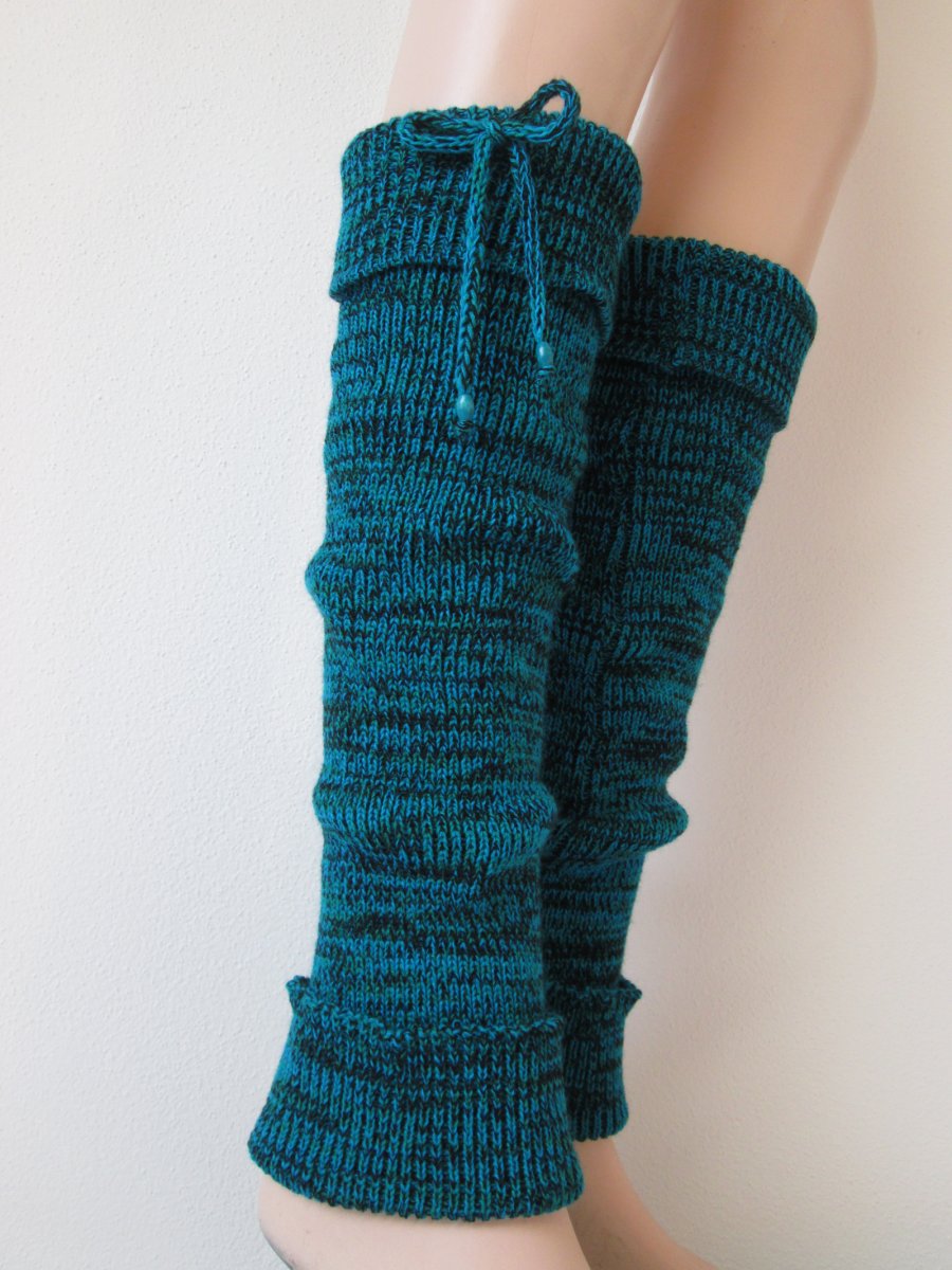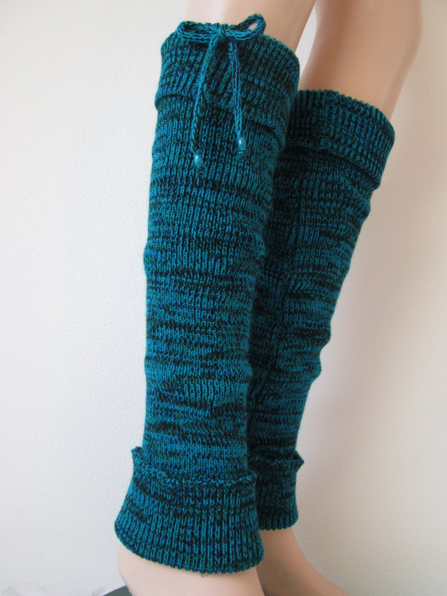 Návleky jsou upleteny pružným vzorem, nahoře je šňůrka na stažení a zároveň návleky zdobí. Na konci šňůrky jsou lakované dřevěné korálky.