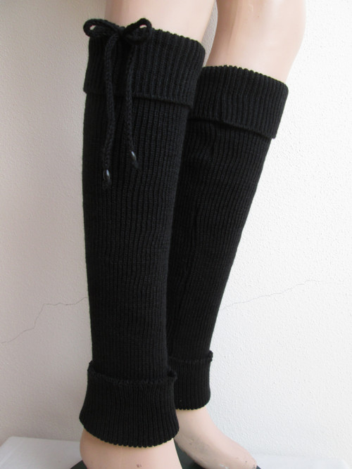 Návleky jsou upleteny pružným vzorem, nahoře je šňůrka na stažení a zároveň návleky zdobí. Na konci šňůrky jsou lakované dřevěné korálky. Mašlička může být vpředu nebo po straně. Návleky mají šev.